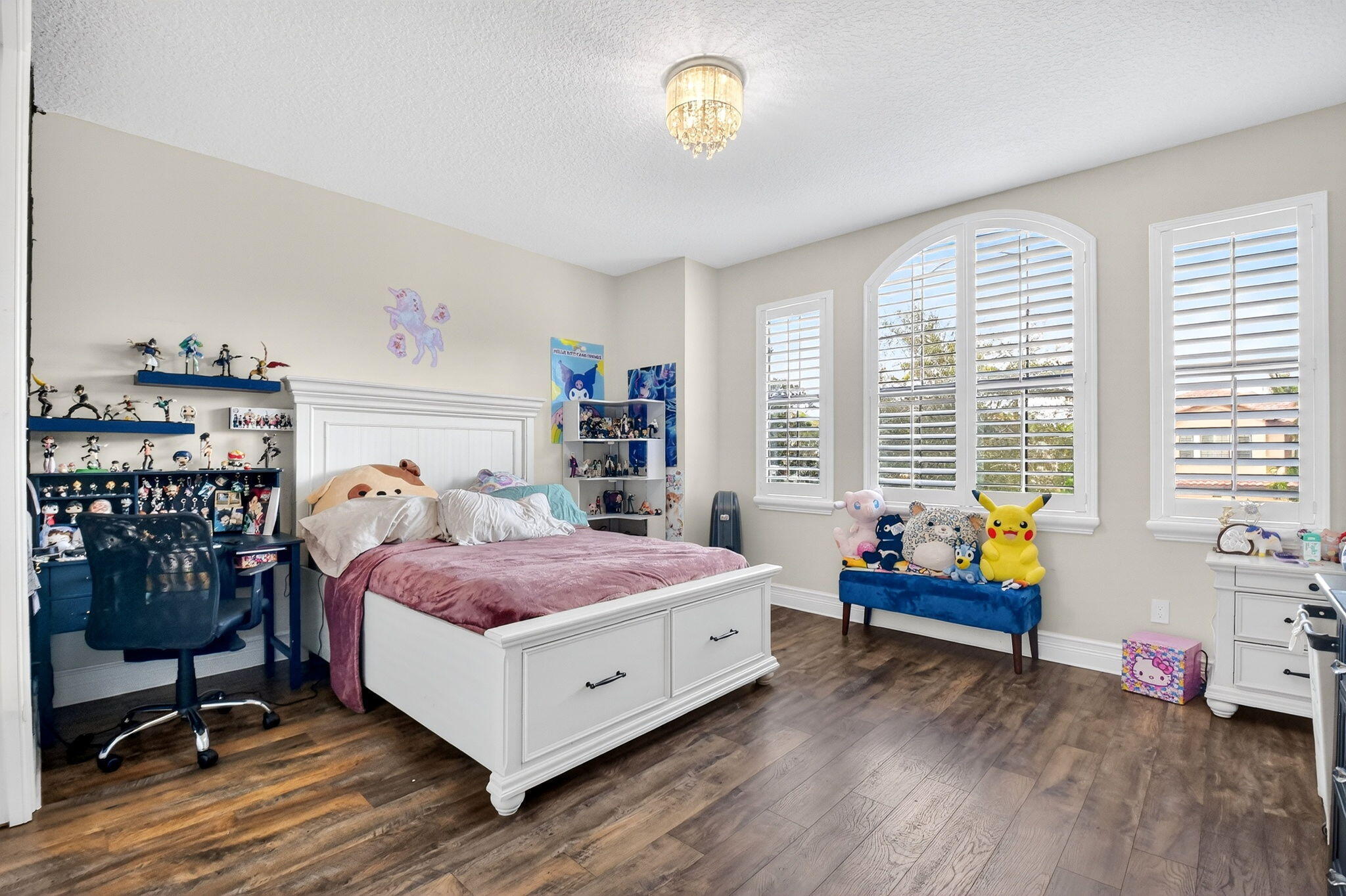 Located in Delray Beach's highly desirable, resort-style community of The Bridges--offering no mandatory club membership or equity buy-in--this upgraded Newport model offers over 4,260 sq ft of elegant living space. The home features 6 spacious bedrooms, 5 baths, and a loft, highlighted by volume ceilings, 24x24 tile flooring, and a dramatic turned staircase. The gourmet eat-in kitchen is ideal for entertaining, showcasing granite countertops, a breakfast bar, custom cabinetry, double ovens, and a 4-burner gas cooktop with stainless steel appliances. Upgrades include a wet bar, designer accents, impact windows, plantation shutters throughout, and a 3-car garage. The luxurious primary suite offers dual walk-in closets, double vanities, a soaking tub, and spa-like shower. She is a must see!!