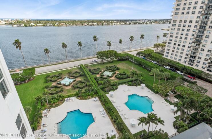 Exceptional end unit with exposure east, south and west. New kitchen and baths with many upgrades Private balcony with protection from wind and sun. Full time Doorman and assigned parking. Most convenient location to Palm Beach (5 Min) and Downtown West Palm Beach Apartment Professionally measures 1,337 Sq. Ft. Building has passed 40 year Milestone engineering Inspection. Come see the incredible view and tastefully finished apartment.