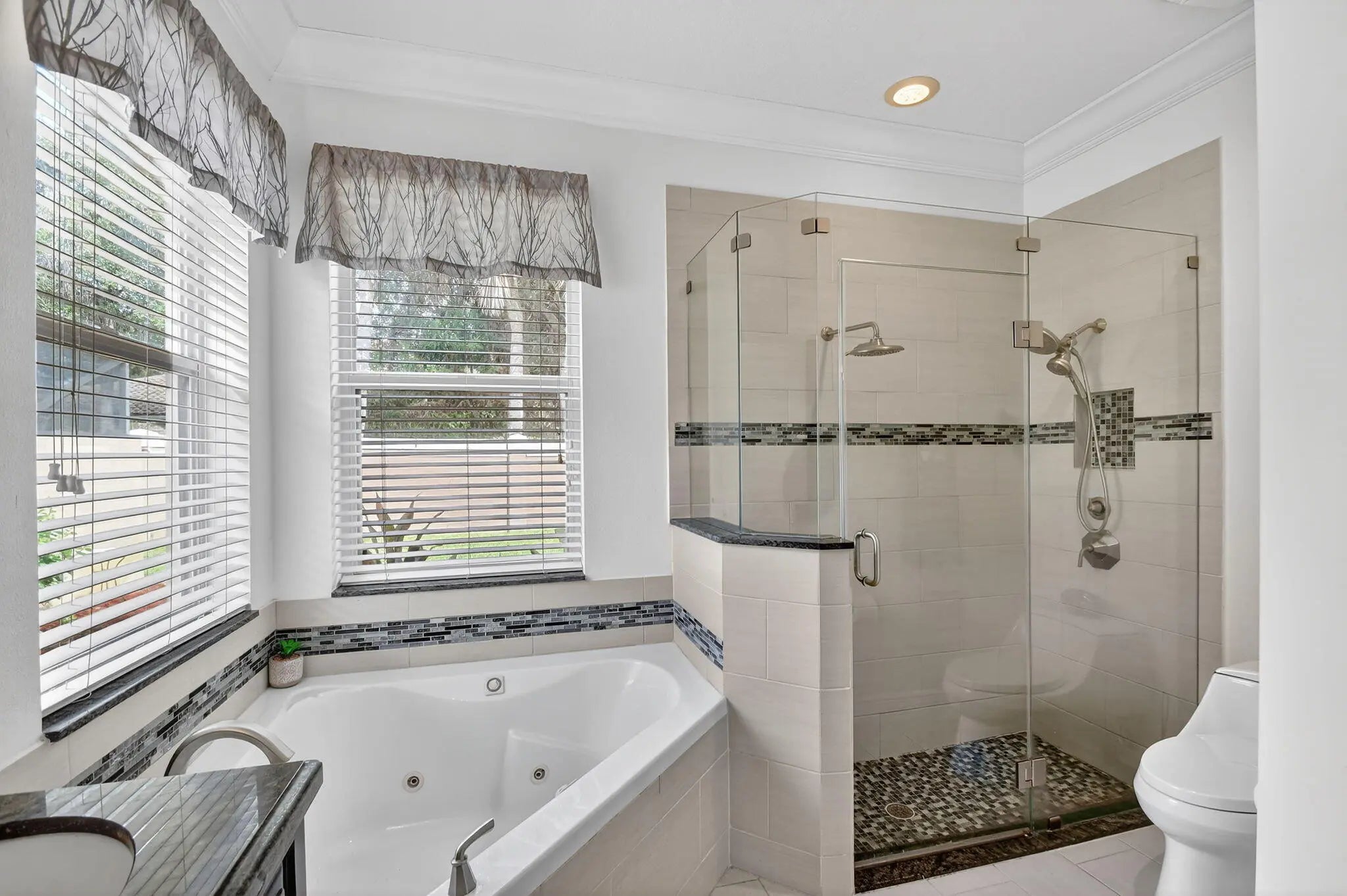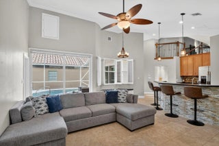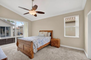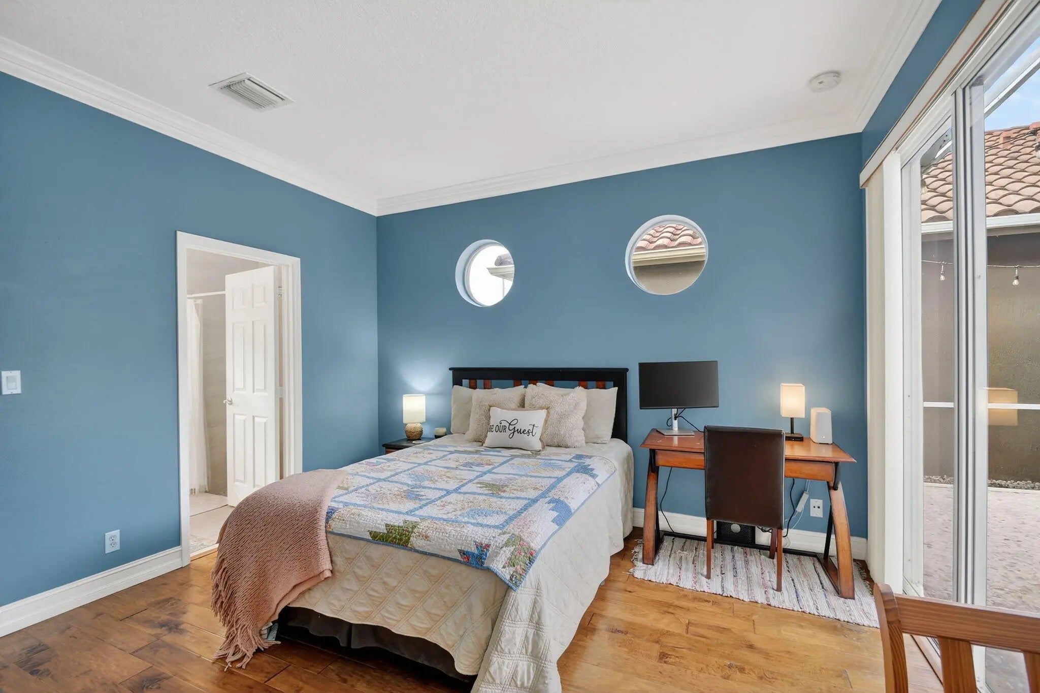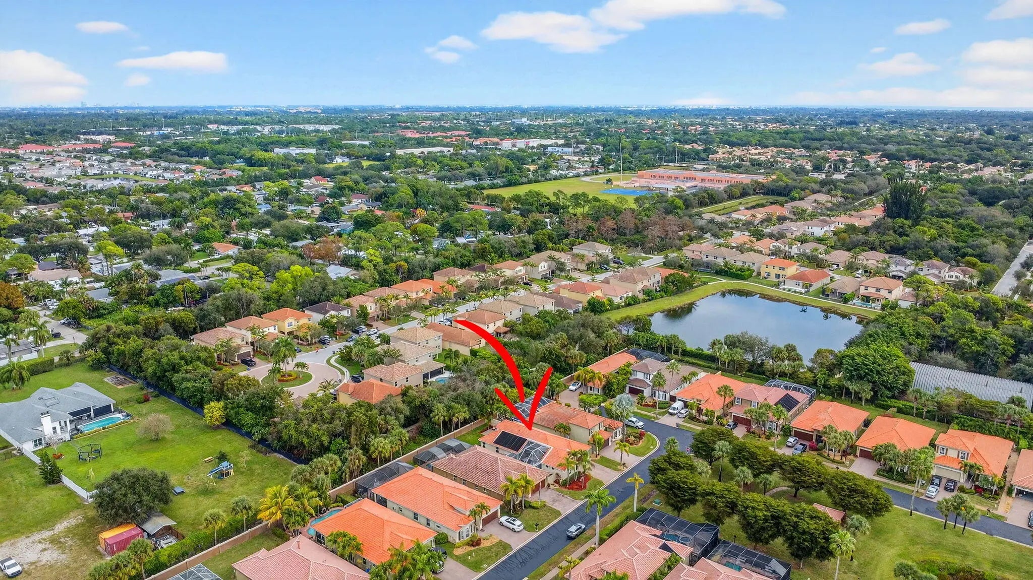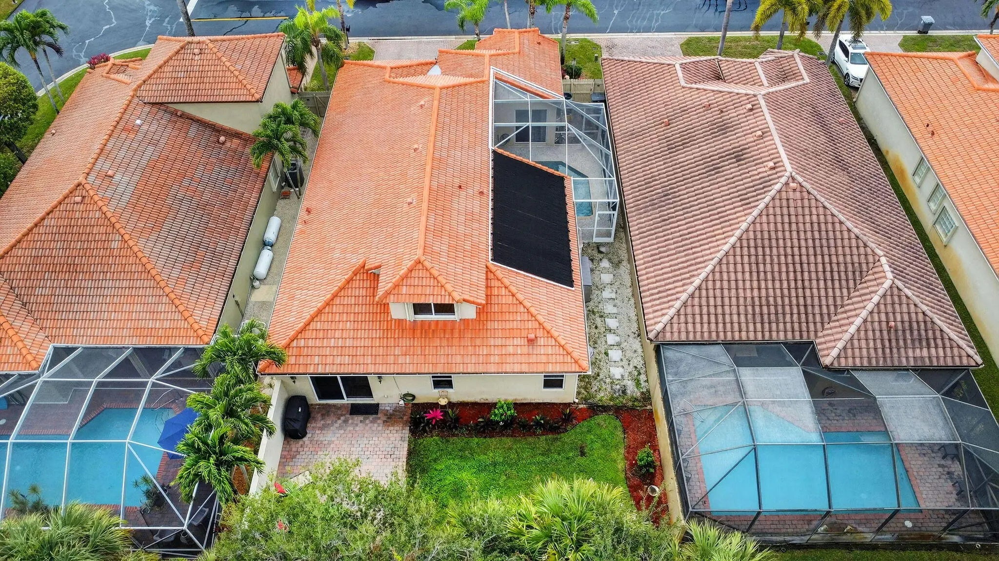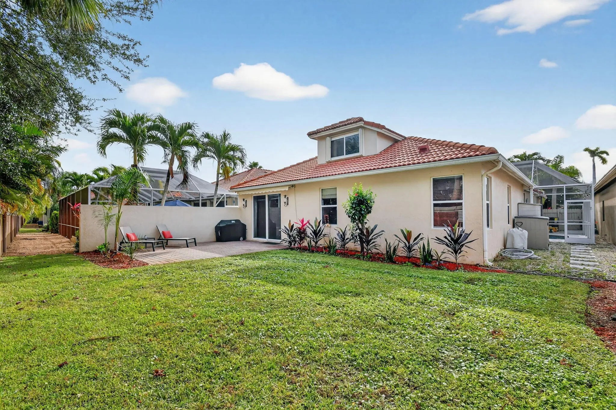 Exceptional courtyard pool home featuring a 3 bedroom, 2 bath main residence and a detached guest house with an updated full bath, ideal for guests, in-laws, or a private office. Located in the desirable Gateway Palms gated community, this beautifully maintained home showcases plantation shutters, crown molding throughout, and a brand-new A/C. The kitchen offers SS appliances, double oven and generous counter space. The spacious primary suite includes a spa-inspired bath and built-in closets. Designed for privacy and outdoor enjoyment, the home offers two distinct outdoor living areas a screened courtyard pool with solar heating and modern filtration, plus a tranquil backyard with retractable awning. Additionally, it includes storm shutters, Miami-Dade-rated garage door and added privacy