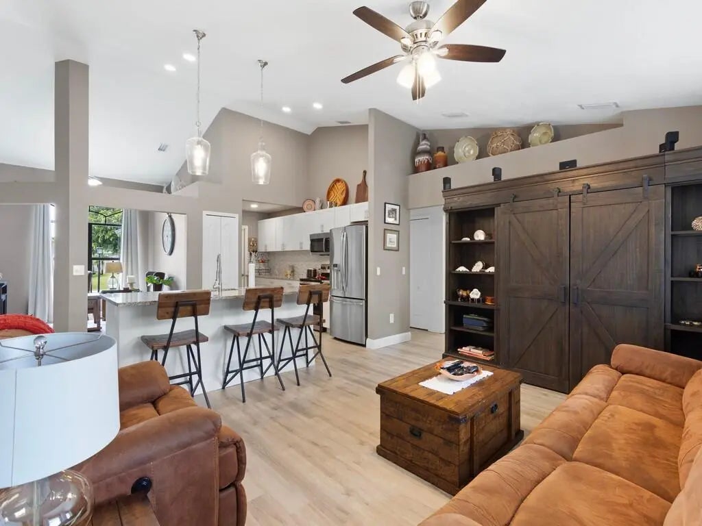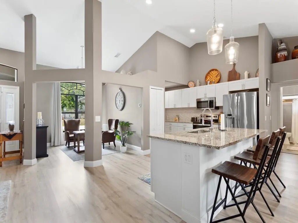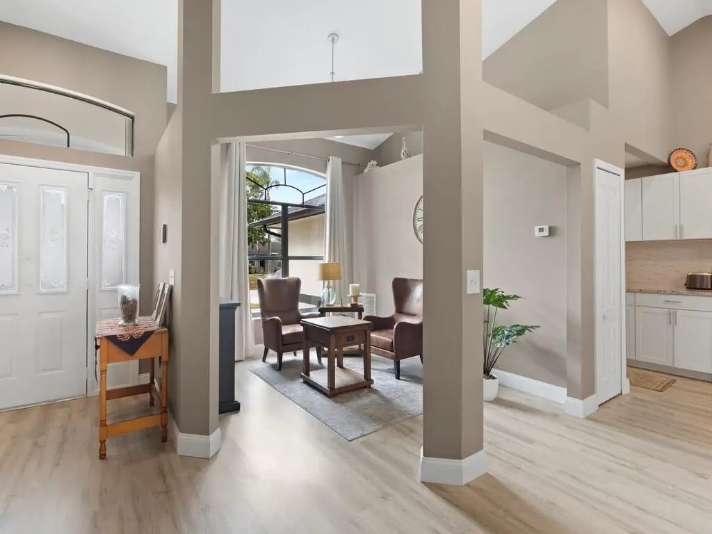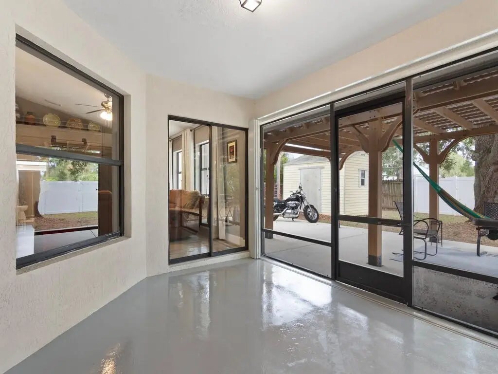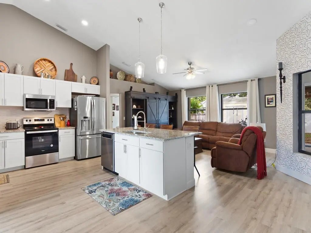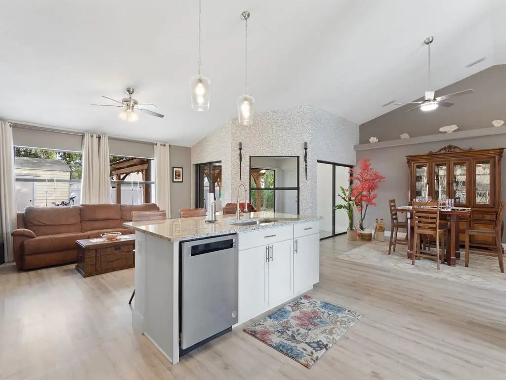 Welcome to this stunning, move-in-ready home, thoughtfully renovated within the last three years and designed to impress. Featuring 3 spacious bedrooms and 2 luxurious bathrooms with a den/ office off the primary bedroom.This property blends modern upgrades with comfort and style.Step inside to an open-concept layout filled with abundant natural light, enhanced by updated lighting throughout. The home offers peace of mind with a newer roof, newer A/C system with air handler and duck system and insulation. Newer luxury vinyl flooring and a newer water heater. Additionally complete package of stainless steel appliances. Outdoors, enjoy Florida living at its finest with oversized pergola perfect for entertaining, along with a buil-in fire pit for relaxing evening.