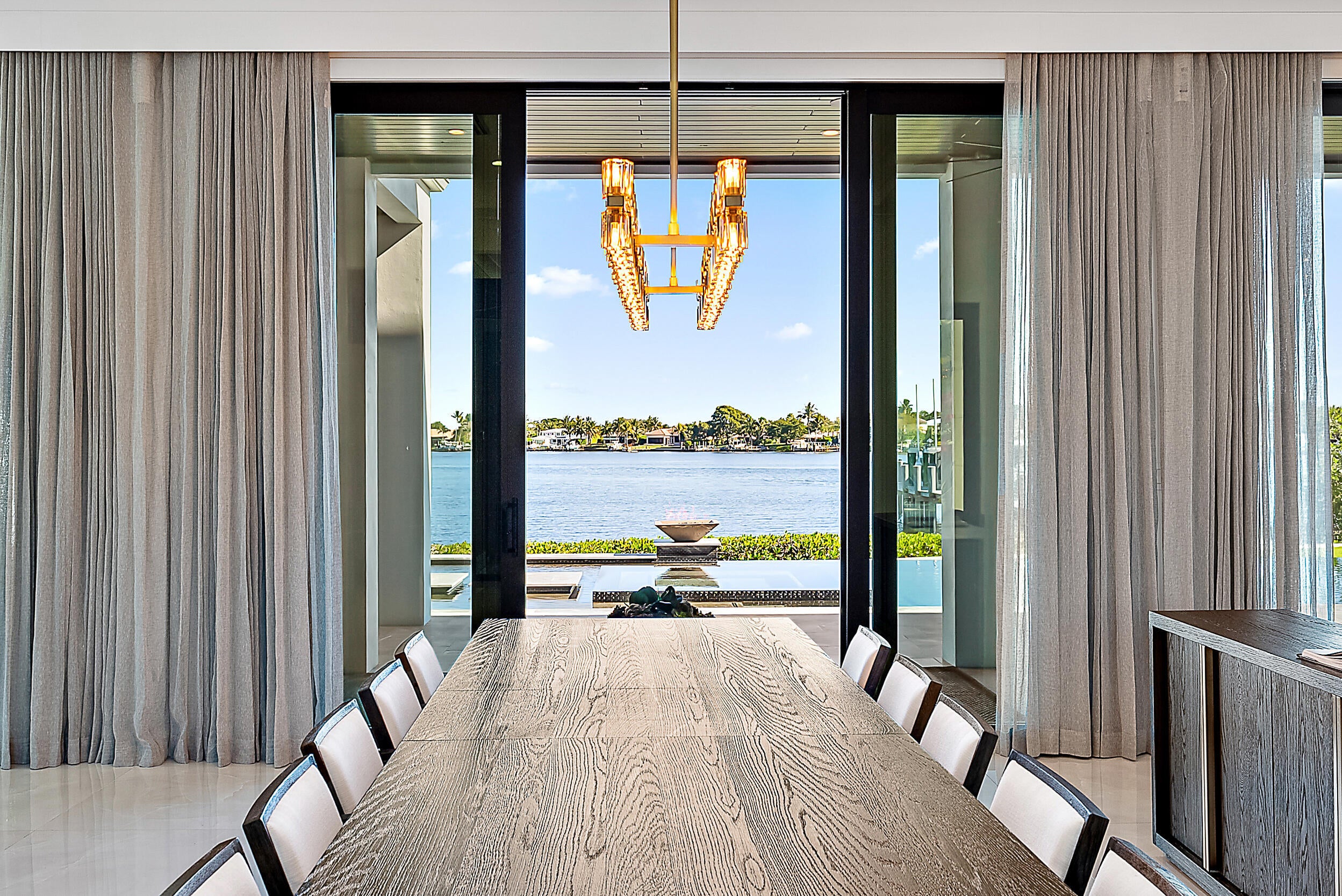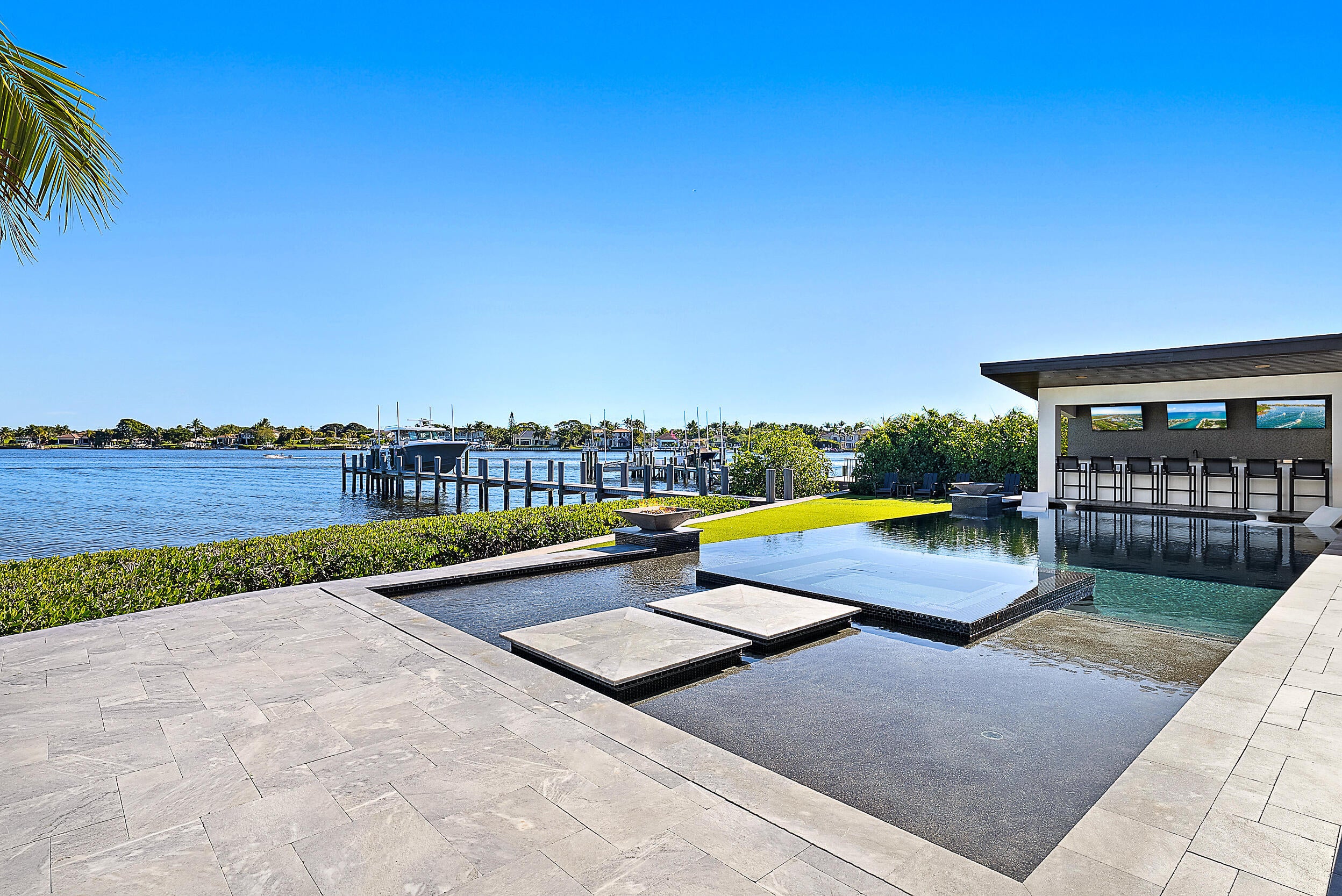 Waterfront estate home built in 2022, ideally positioned on a quiet street with fewer than ten homes and offering some of the most impressive views Jupiter has to offer. Designed with sleek, modern architecture, the residence is complemented by a separate guest house, providing flexibility for visitors, extended family, or a private office. Enjoy true waterfront living with a 50,000-lb boat lift and direct ocean access right from the backyard. Perfectly situated near Jupiter's iconic sandbars, waterfront restaurants, and everything the area's famous waterways have to offer. The outdoor living space is designed for year-round enjoyment, featuring a resort-style pool and spa, expansive turf areas, multiple fire pits, and an exceptional summer kitchen with a gazebo--creating theideal setting for entertaining or relaxing in complete privacy. Seamless indoor-outdoor flow enhances both functionality and livability throughout the home. The primary suite will blow your mind, featuring expansive custom closet space, sweeping views looking the full length of the river, and an incredible primary bathroom that completes the experience. A rare opportunity to own a newer construction waterfront estate offering privacy, modern design, breathtaking views, and immediate access to the Jupiter lifestyle.