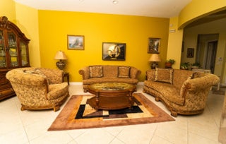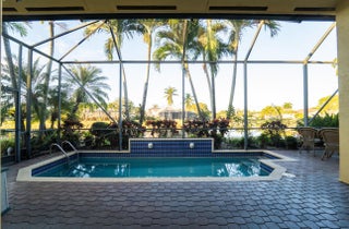 This Ventana model situated on one of the premier lakefront lots in the sought-after Buena Vida 55+ gated community, is conveniently located off Forest Hill Boulevard. Designed for effortless single-level living, the home offers tranquil water views and extended covered, screened patio overlooking a custom heated pool, creating an ideal setting for year-round indoor-outdoor enjoyment and South Florida sunsets. The interior is thoughtfully designed with 18" x 18" neutral tile laid on the diagonal throughout the main living areas, featuring a decorative mosaic inlay at the entry. Architectural details include volume ceilings, rounded corners, detailed baseboards, and custom window treatments throughout. The kitchen offers upgraded cabinetry with glass display doors, crown molding, a built-in wine rack, granite countertops, and a tumbled marble backsplash. Bathrooms feature upgraded tile finishes, while the spacious primary suite includes a Jacuzzi soaking tub for a spa-like retreat. Residents of Buena Vida enjoy resort-style 55+ living with a 24-hour manned gate, grand fountain entry, elegant clubhouse, full-service spa with treatment rooms and steam facilities, state-of-the-art fitness center, aerobics studio, café, private locker rooms, all within one of Wellington's premier active-adult communities.