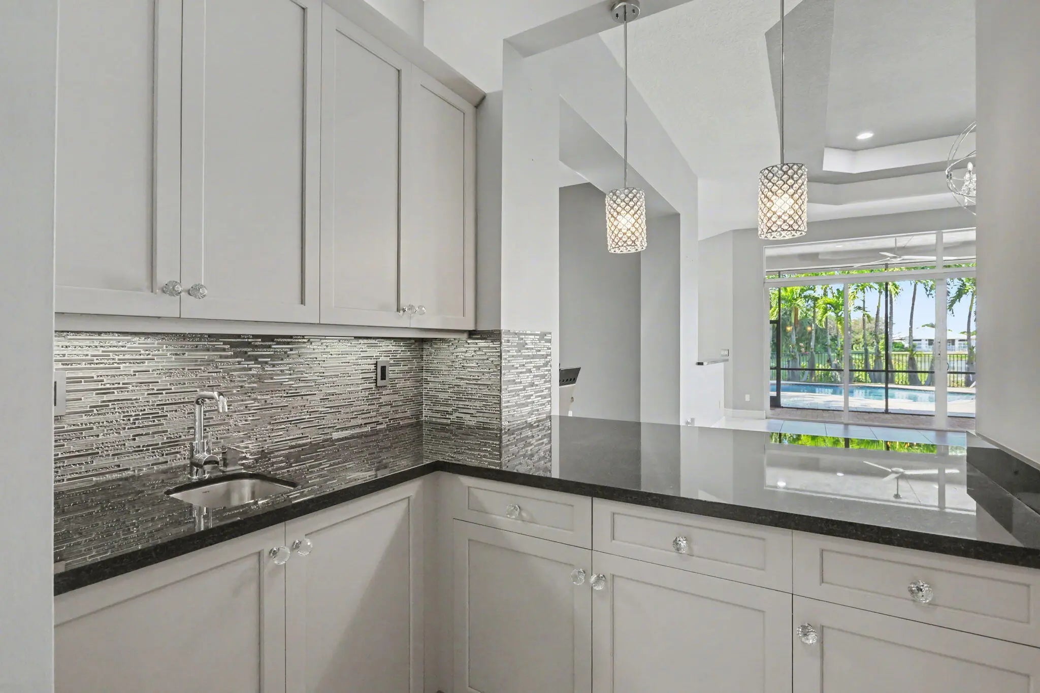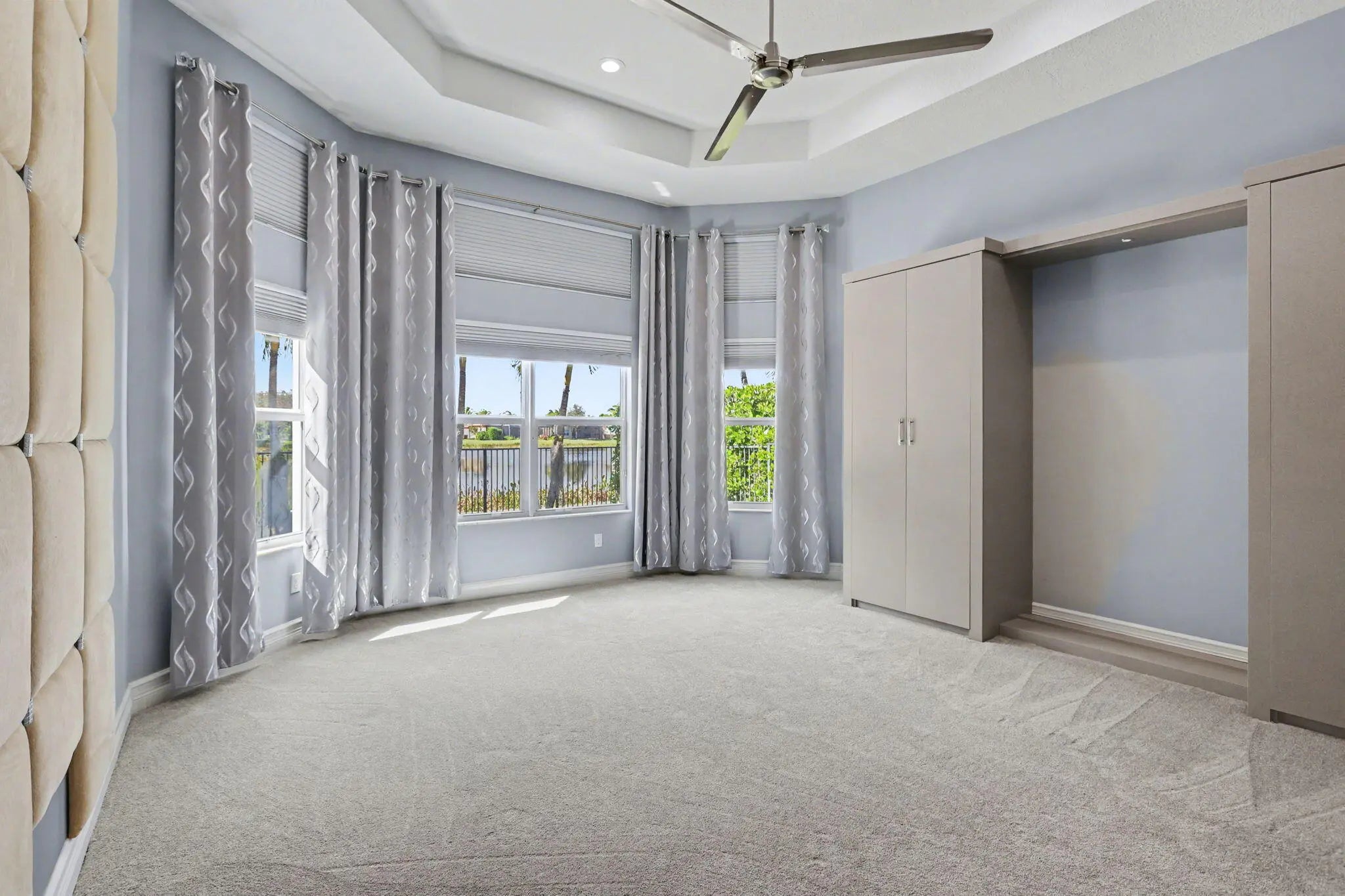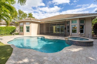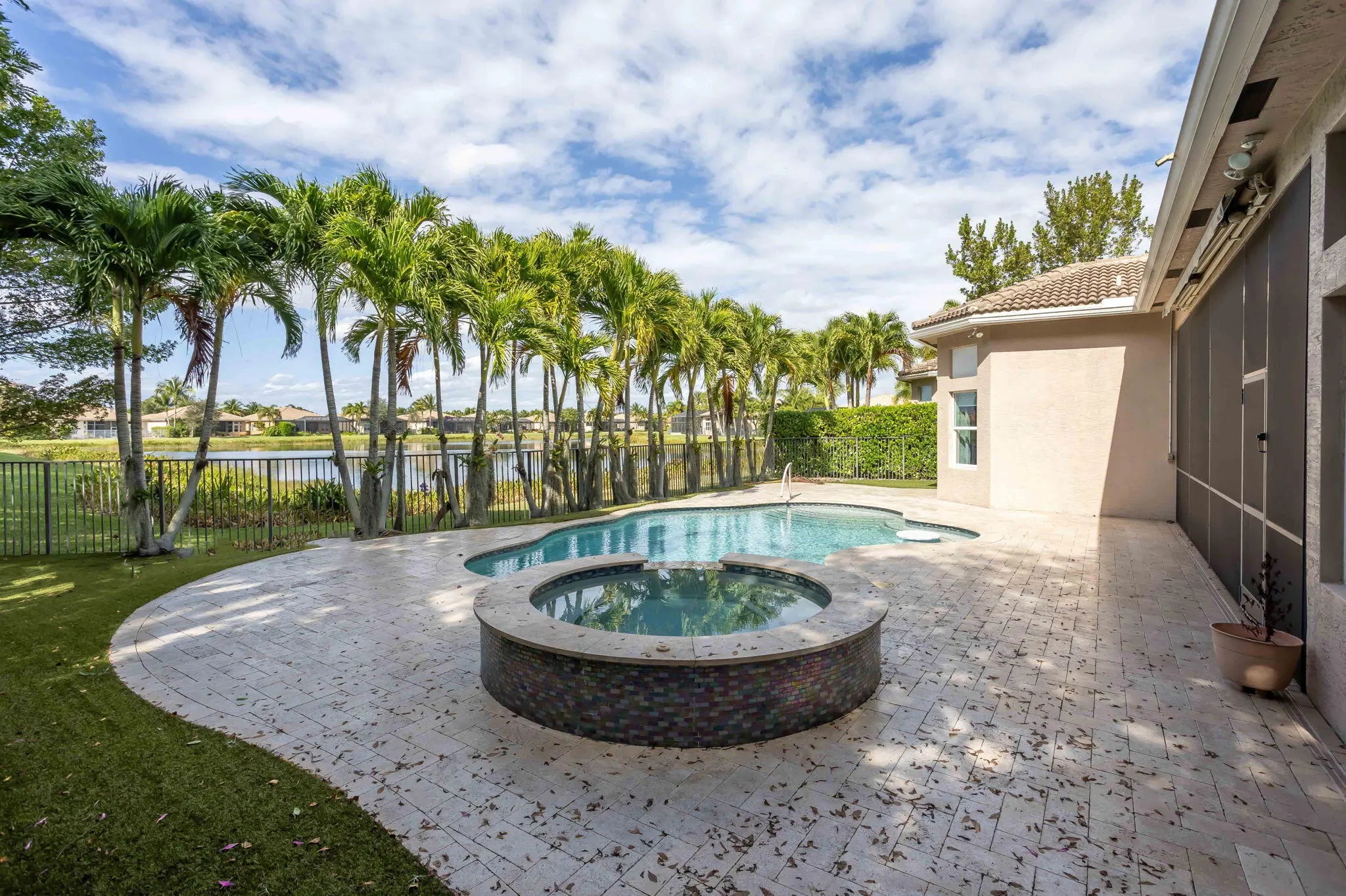 CLICK VIDEO TAB to view LIVE narrated video. 3 Bedroom + Club Room, 3.5 Bath rarely available 'Carlyle' model is highly upgraded featuring a freeform custom built saltwater heated Pool and Spa and situated on a Builder's Premium corner lot with West Exposure and endless long lake views! Upgrades include Granite kitchen with Stainless Steel appliances, Center Island, Breakfast nook and Snack bar. Spacious dining room with wet bar off the kitchen opens to the great room for entertaining. Primary suite boasts a Coffered ceiling and large Custom Built out walk-in closets. Primary bath provides Custom cabinetry, Dual sinks, Soaking tub and Walk-in shower. Front entry way features French doors, Upgraded light fixtures throughout, Newly painted interior, Custom electric window treatments