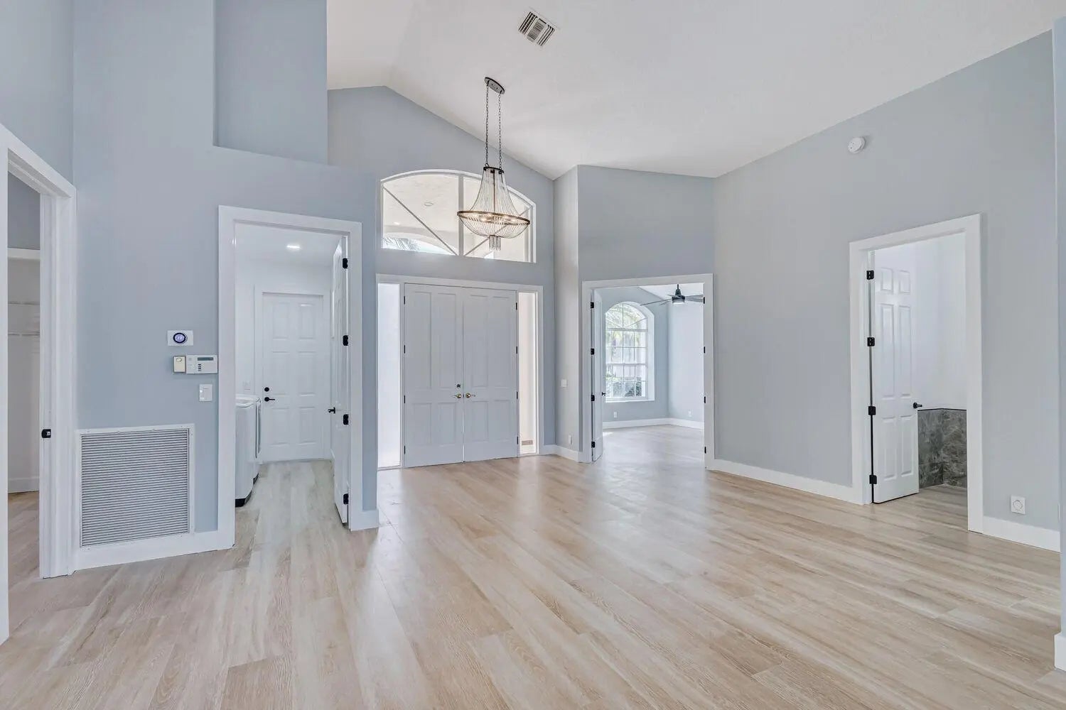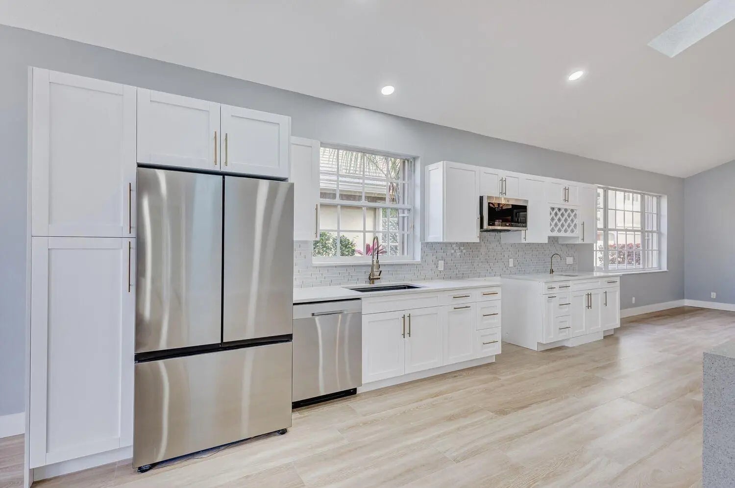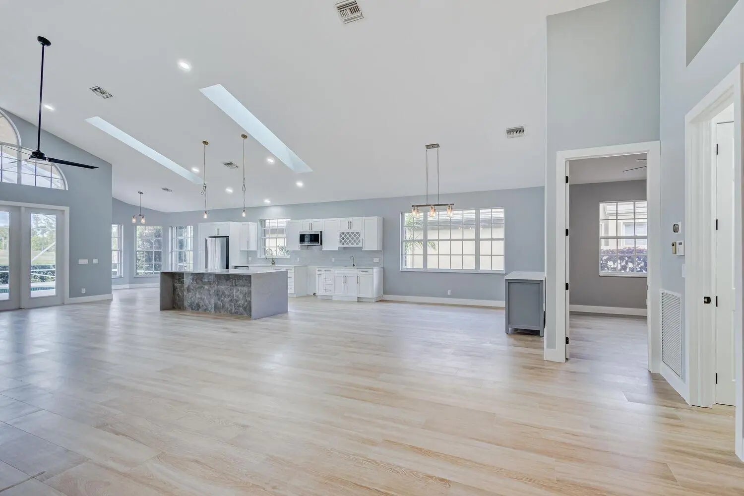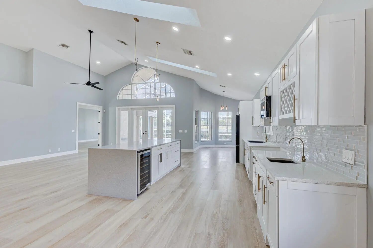 WELCOME to an expansive single-level newly renovated modern home w/ 4 bedrooms, 3 en-suite bathrooms (+ half bath). Includes screened, heated pool & spa located directly on the golf course w/ amazing sweeping lake & course views, + privacy landscaping. Everything is brand new including an amazing open kitchen w/ soaring ceiling, attached 2-car garage, stainless steel appliances, gas stove, wet bar, wine refrigerator & rack, ''spa-like'' master bathroom w/ powered lit mirrors, soaking tub, rainfall shower, heated towel rack & private water closet. Located in a private enclave inside of Ironhorse CC, a 24-hour guard gated community, offering endless nature, golf and lakes. Access to PGA National 5 Golf courses (pay as you play) & amenities included with option to purchase monthly golf pass.