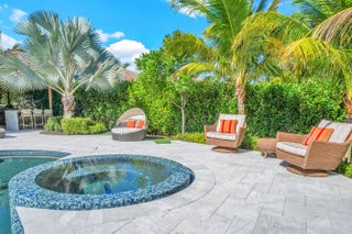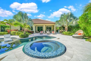 4 Bed, 3 Bath, 3-Car Gar. 1 STORY luxury home w/ DREAMSCAPE backyard on 1/3 acre in amenity rich, Rialto. 2015 built, then 2023 saw a resort style heated pool, champagne spa and Coyote outdoor kitchen added & surrounded by nearly 2k sq ft of leathered marble, synthetic turf and professionally designed & lit landscaping truly creating a private paradise. Inside, a floor plan (in pics) you'll never outgrow with 11' ceilings, flexible living spaces, large, private bedrooms & coveted brands incl. Sub-Zero/Wolf/Cove, while matching updates of fixtures and finish can be found throughout. ''Must Haves'' include - a guest en-suite/cabana bedroom, dining room seating 8-10, Living Rm + Family Rm., Walk-In Pantry, spa-inspired master bath & HUGE walk-in closet. All across from 94 acre Jupiter Comm. P