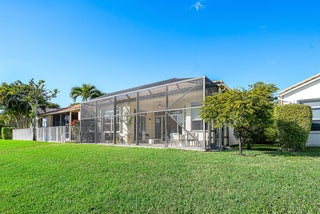 Experience easy lakefront living in Buena Vida, Wellington's only gated 55+ resort-style community. This beautifullyappointed 2 bed, 2.5 bath home plus den/office offers tranquil water views, lush tropical landscaping, and a brightopen layout made for entertaining. French doors, formal living and dining, and an inviting family room flow into theupgraded kitchen with solid wood cabinetry, quartz countertops and backsplash, stainless steel appliances,oversized island, walk-in pantry, and sunny breakfast nook. The primary suite feels like a private retreat withsoaking tub, double vanities, and enclosed shower. Guest bedroom features an ensuite bath. Unwind on yourextended screened-in patio overlooking the lake. Newer HVAC 2019 and hurricane patio shutters 2024.Enjoy resort amenities including pools, spa, café, fitness, tennis, pickleball, and a full social calendar. Minutes to dining, parks, equestrian, and PBI.
