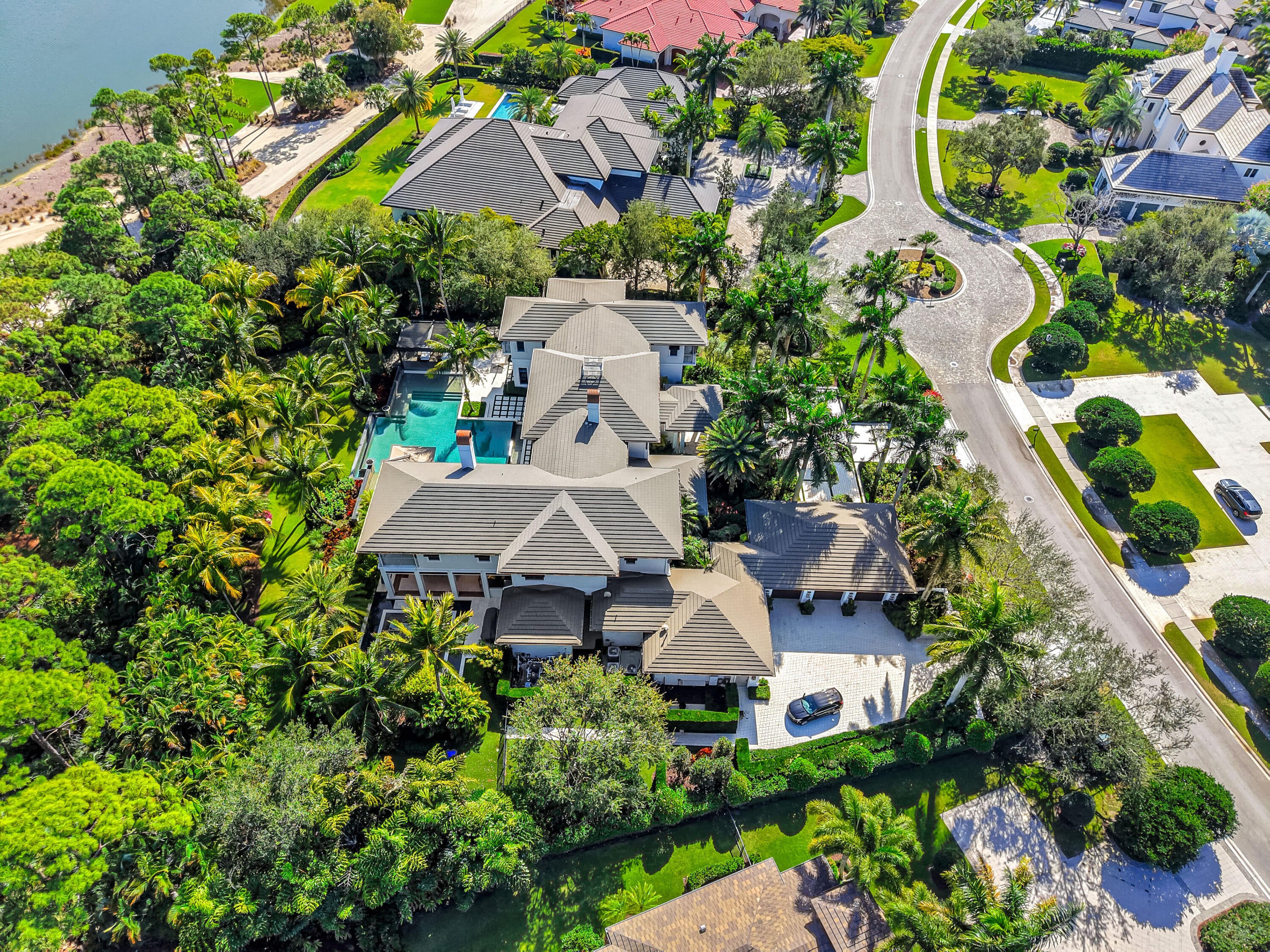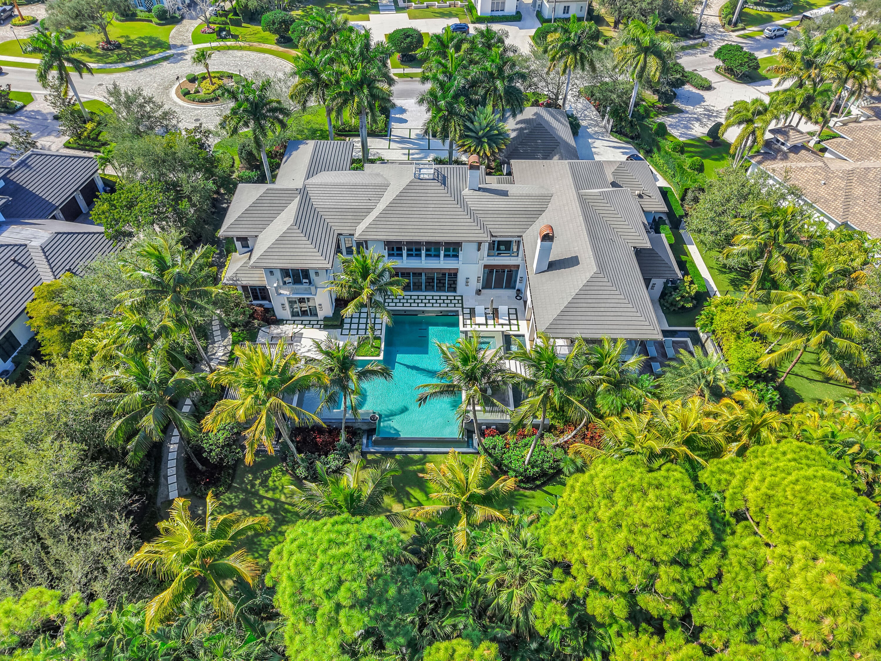 Welcome to this exceptional estate located within the one-acre enclave of the prestigious Old Palm Golf Club. Designed by Randall Stofft , Architect, this magnificent 5-bedroom residence offers over 9,000 square feet of luxurious living space with a thoughtfully designed floor plan and impeccable attention to detail throughout.Ideal for both everyday living and grand entertaining, the home features multiple gathering spaces, including an impressive game room and private theater. The expansive second-floor primary suite is a true retreat, complete with his-and-her bathrooms and walk-in closets, with convenient elevator access nearby. Four additional en-suite guest bedrooms, along with a dedicated office and private gym, provide exceptionalComfort and flexibility. Outdoors, the resort style pool and patio are enhanced by exotic water features, creating tranquil, spa-like setting perfect for relaxation or entertaining. Ideally situated in the heart of the Palm Beaches, Old Palm offers easy access to major highways, world class dining, shopping, and entertainment. This full service golf club community features a 33-acre practice facility and a 20,000 sf lifestyle center, with full golf membership required.
