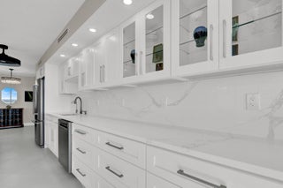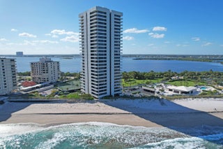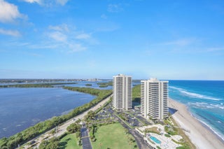 Perched high above the shoreline, Water Glades 22B presents a rare opportunity to own a fully redesigned oceanfront residence with sweeping views of both the Atlantic Ocean and the Intracoastal Waterway. From its 22nd-floor vantage point, this two-bedroom, two-bath home captures an ever-changing coastal panorama, offering front-row seats to sunrise over the ocean and glowing sunset skies over the waterway.The residence opens into a bright, contemporary living environment where walls of glass frame the horizon and natural light fills the space throughout the day. The open living and dining areas flow effortlessly to an expansive wraparound balcony, creating a seamless indoor-outdoor experience and a constant connection to the surrounding water...(SEE MORE)Anchoring the living space is a striking, custom kitchen designed for both form and function. A quartz waterfall island takes center stage, complemented by sleek cabinetry and refined finishes. Premium appliances are integrated seamlessly for a clean, modern aesthetic- making the kitchen as practical as it is visually compelling. The primary suite offers a tranquil retreat with direct balcony access and unobstructed ocean views. A thoughtfully designed closet system provides ample storage, while the ensuite bath delivers a spa-like experience with marble finishes, dual vessel sinks, wall-mounted fixtures, and a frameless walk-in shower featuring built-in seating. Designed with flexibility in mind, the guest suite functions effortlessly as a bedroom, office, or media space. Thoughtfully designed built-ins, tranquil Intracoastal views, and a dedicated workspace create a versatile retreat suited for guests or everyday living. The guest bath continues the home's elevated design with oversized porcelain tile and modern fixtures. Throughout the residence, no detail has been overlooked. Wide-plank porcelain flooring, solid-core doors, custom lighting, and impact-rated glass enhance both style and performance. An in-unit washer and dryerrare for the buildingadds everyday convenience. The wraparound balcony is a defining feature, offering commanding water views in every direction and serving as an extension of the living spaceideal for entertaining or quiet moments overlooking the coastline. Water Glades residents enjoy a full suite of resort-style amenities, including two heated pools, private beach access, fitness center, tennis and pickleball courts, clubhouse, BBQ areas, on-site management, and 24-hour manned security within a pristine oceanfront setting. Situated on the peaceful northern end of Singer Island, the property provides easy access to Palm Beach Gardens, PGA Boulevard, Worth Avenue, and Palm Beach International Airportdelivering a refined coastal lifestyle with exceptional convenience. Elevated oceanfront living with timeless design and unforgettable views.