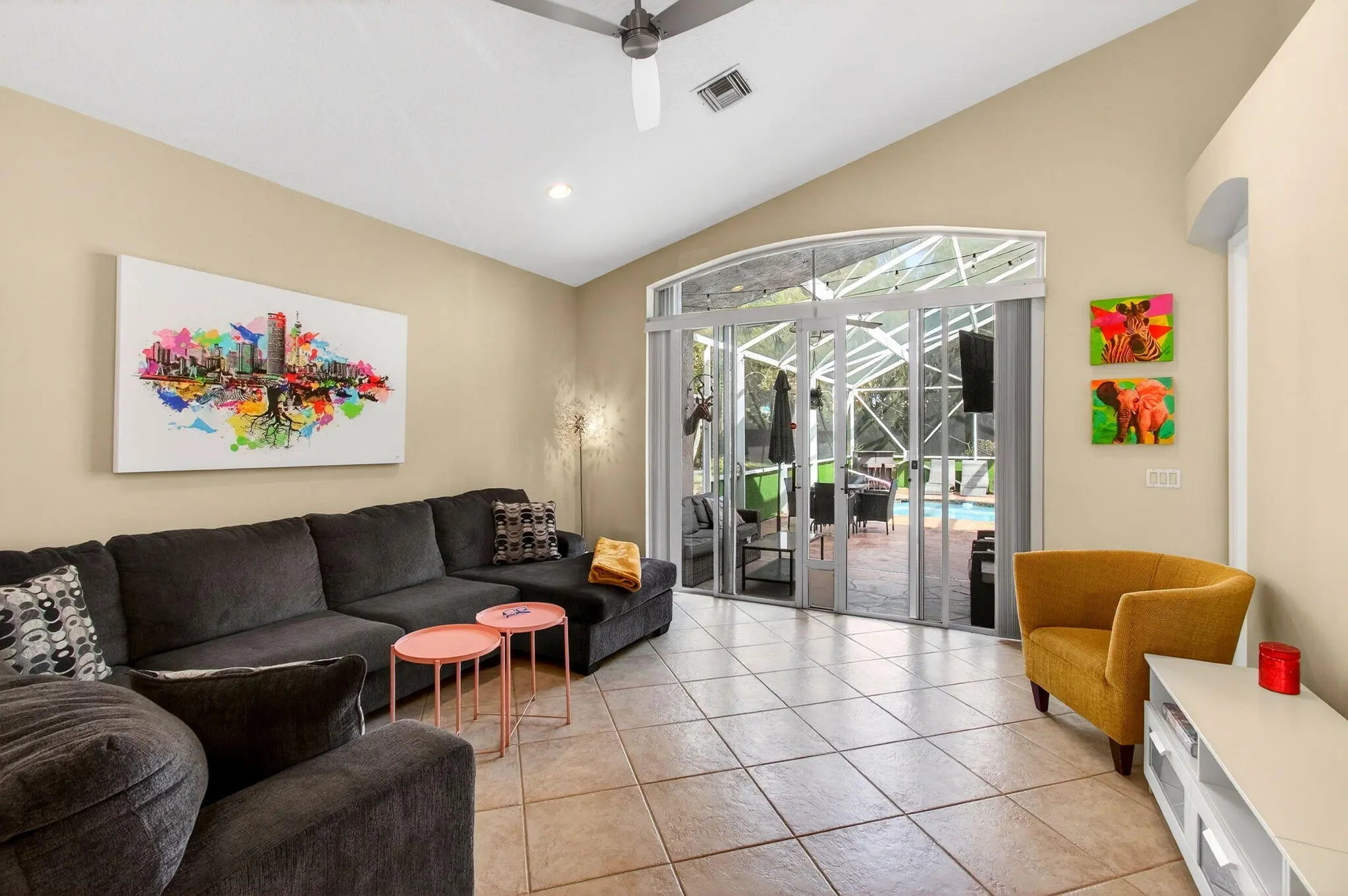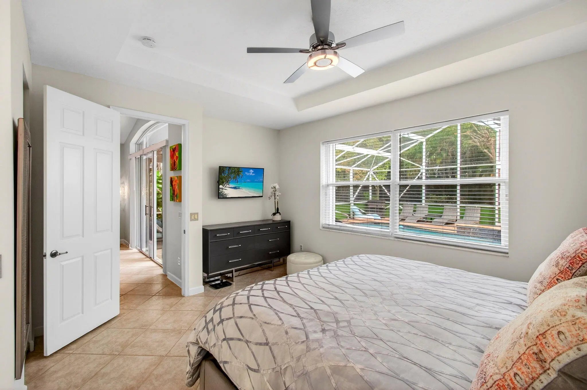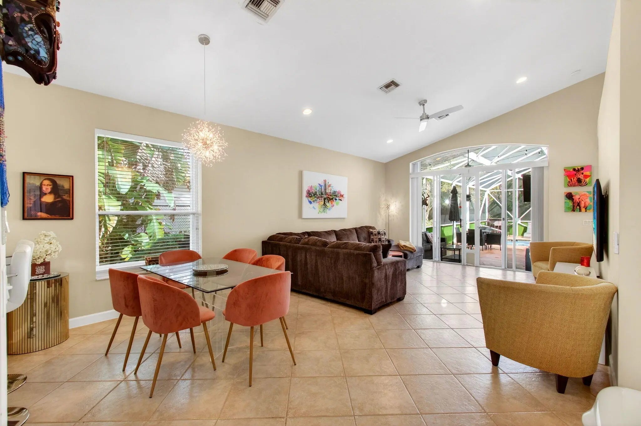 Addison Green 2BR plus den Heated pool, screened lanai Pie-shaped lot Accordion shutters Aberdeen Golf and Country Club membership required Approx 15 mi to PBI, 42 mi to FLLIn Addison Green at Aberdeen Golf and Country Club, 6737 Southport Drive in Boynton Beach, Palm Beach County delivers the kind of South Florida lifestyle that lives as well indoors as it does outside. The single-story plan offers 2 bedrooms plus a den and 2 baths, plus a 2-car garage and paver driveway. Tile flooring, vaulted living-room ceilings, and wide sliding doors keep the home bright and open, flowing straight to the screened lanai. Step out to a heated pool with a covered patio area ready for morning coffee, sunset dinners, and weekend gatherings.
