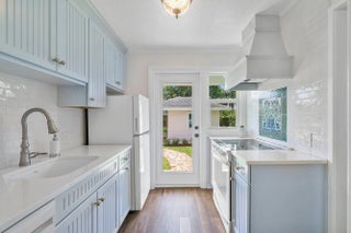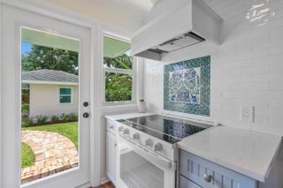 Rare find-not only cute as a button, but there is no work you have to do here. Charming post-war cottage updated with impact windows, a decorative, renovated modern kitchen and a restored nostalgic bathroom. Indoor laundry/storage, gleaming hadwood floors and more. Large yard with lush landscaping, sprinkler system,and both covered and uncovered patios to enjoy endless outdoor entertainment. A large precious ''she shed'' for gardening and craft projects sits aside a beckoning heated saltwarer pool. A perfect down-size or seasonal home. A ''must see!''