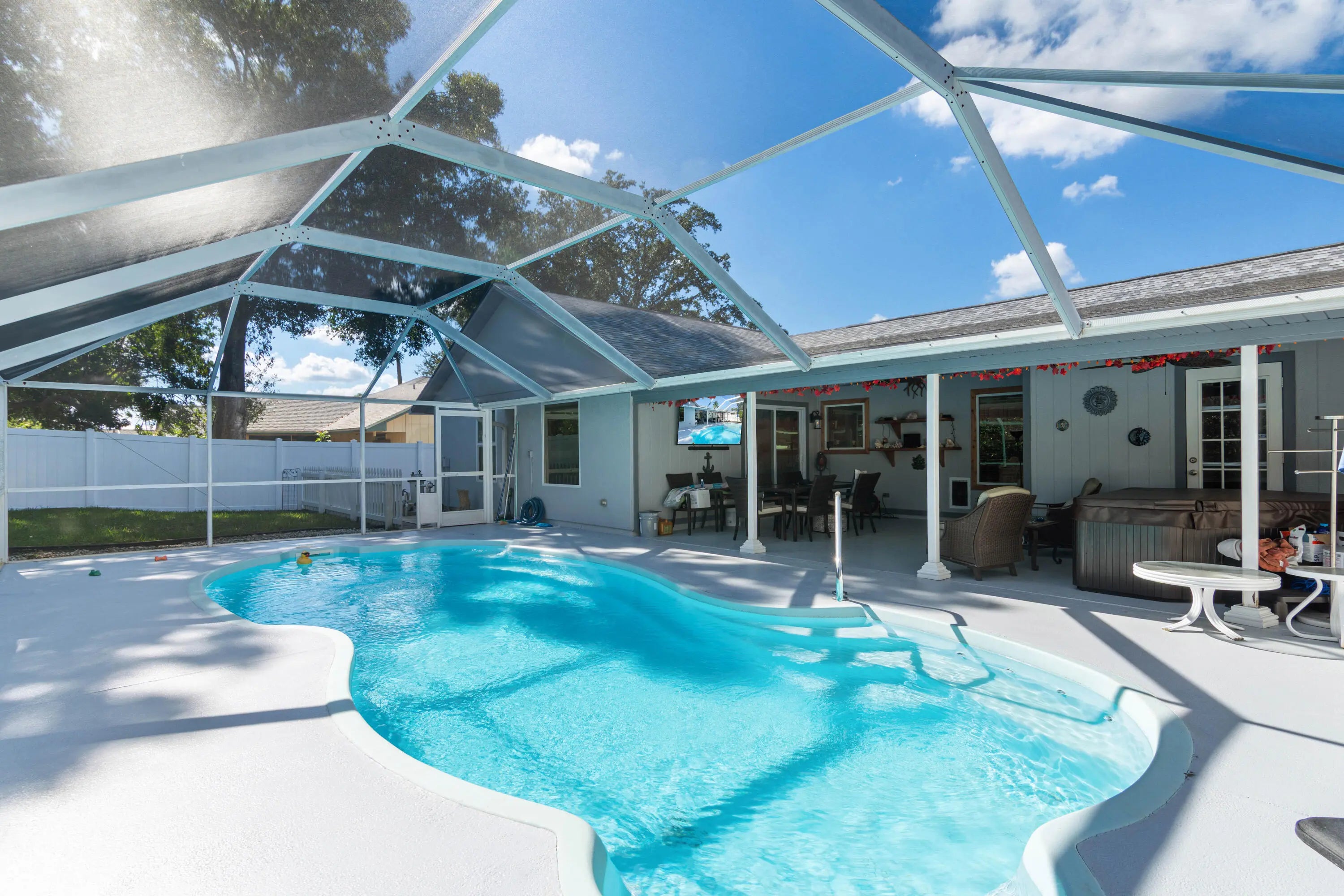 Auto Sprinkler, Covered Patio, Fence, Screen Porch, Screened Patio, Well Sprinkler, Zoned Sprinkler