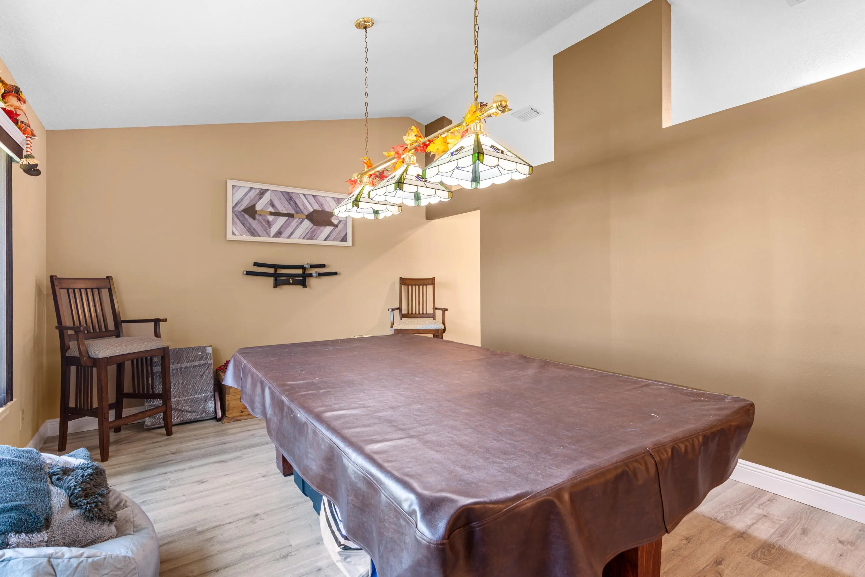 Make this your new home!!! With an open concept area between kitchen, dining and family area, along with an ample size area that could be a formal dining room, den or presently a game room. Many updates performed over the years, making this a very warm and inviting home. In 2021, Impacted Windows were installed, custom wood windowsills at each window, home beautifully stuccoed and painted with premium materials, AC and Hot Water Heater were replaced, and Laminate Flooring throughout the entire home. In 2023, New Roof along with aluminum soffit, gutters, solar vent (for energy conservation), White Vinyl Fencing with oversized gates on each side of home were installed, back fencing is a 6 foot chain link boasting a beautiful Night Jasmine Hedge allowing privacy and landscape.