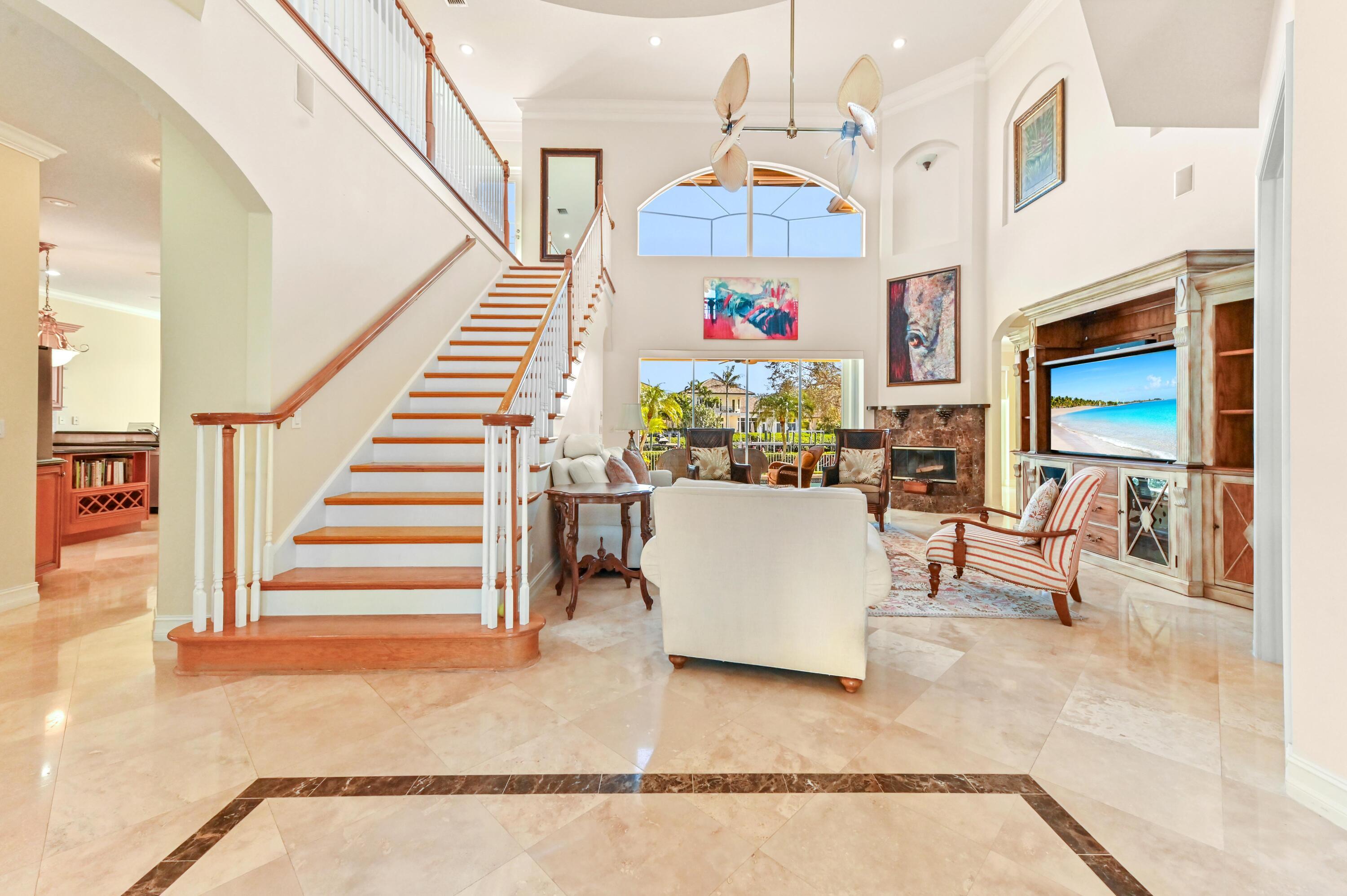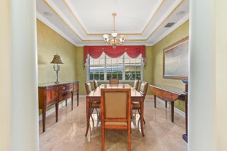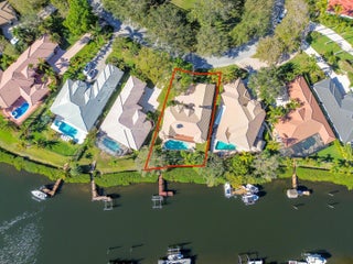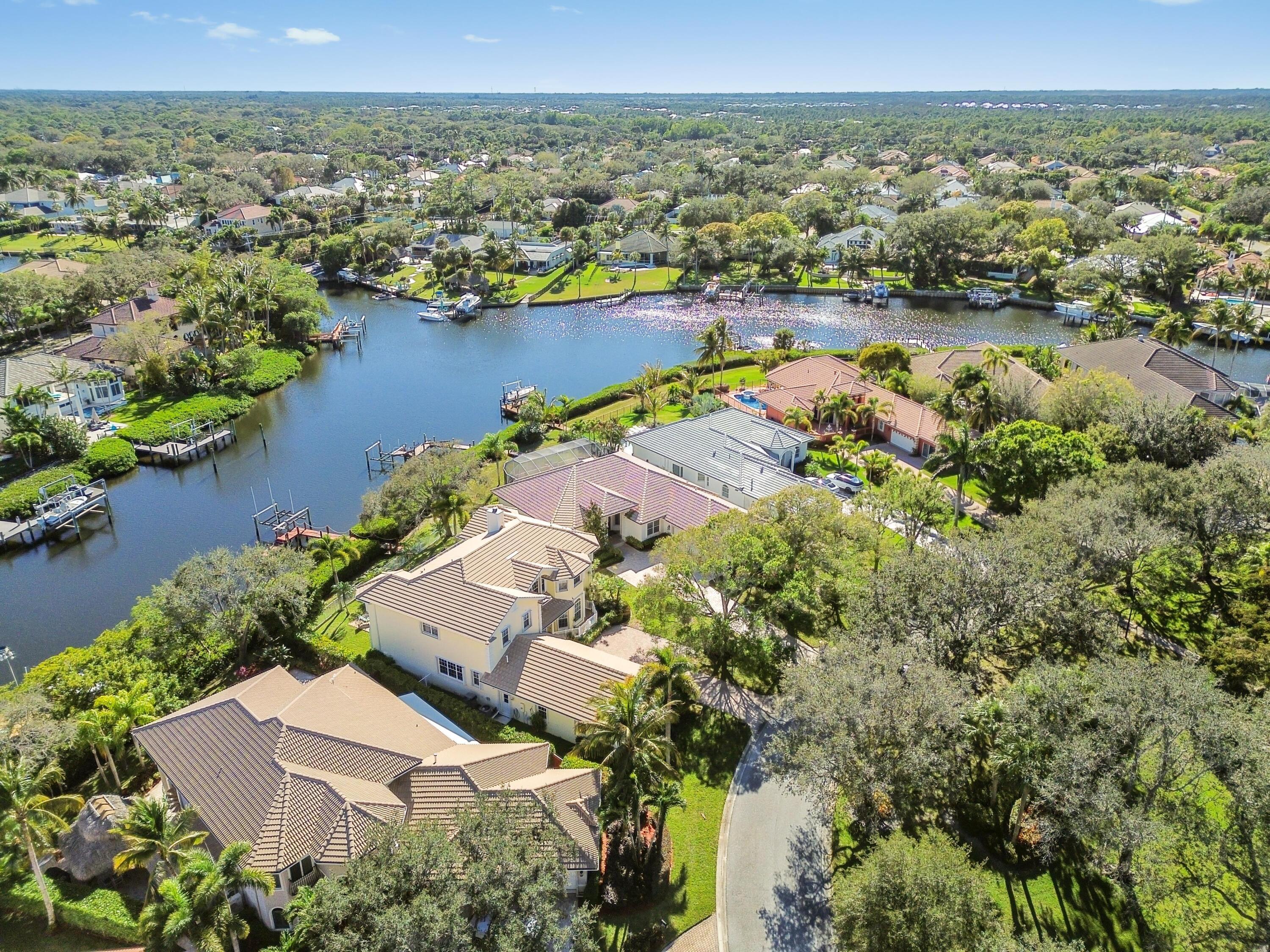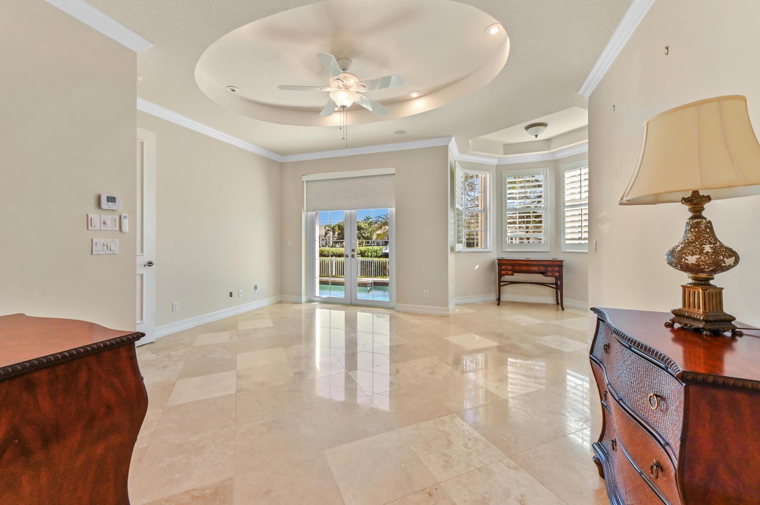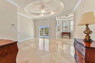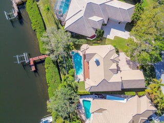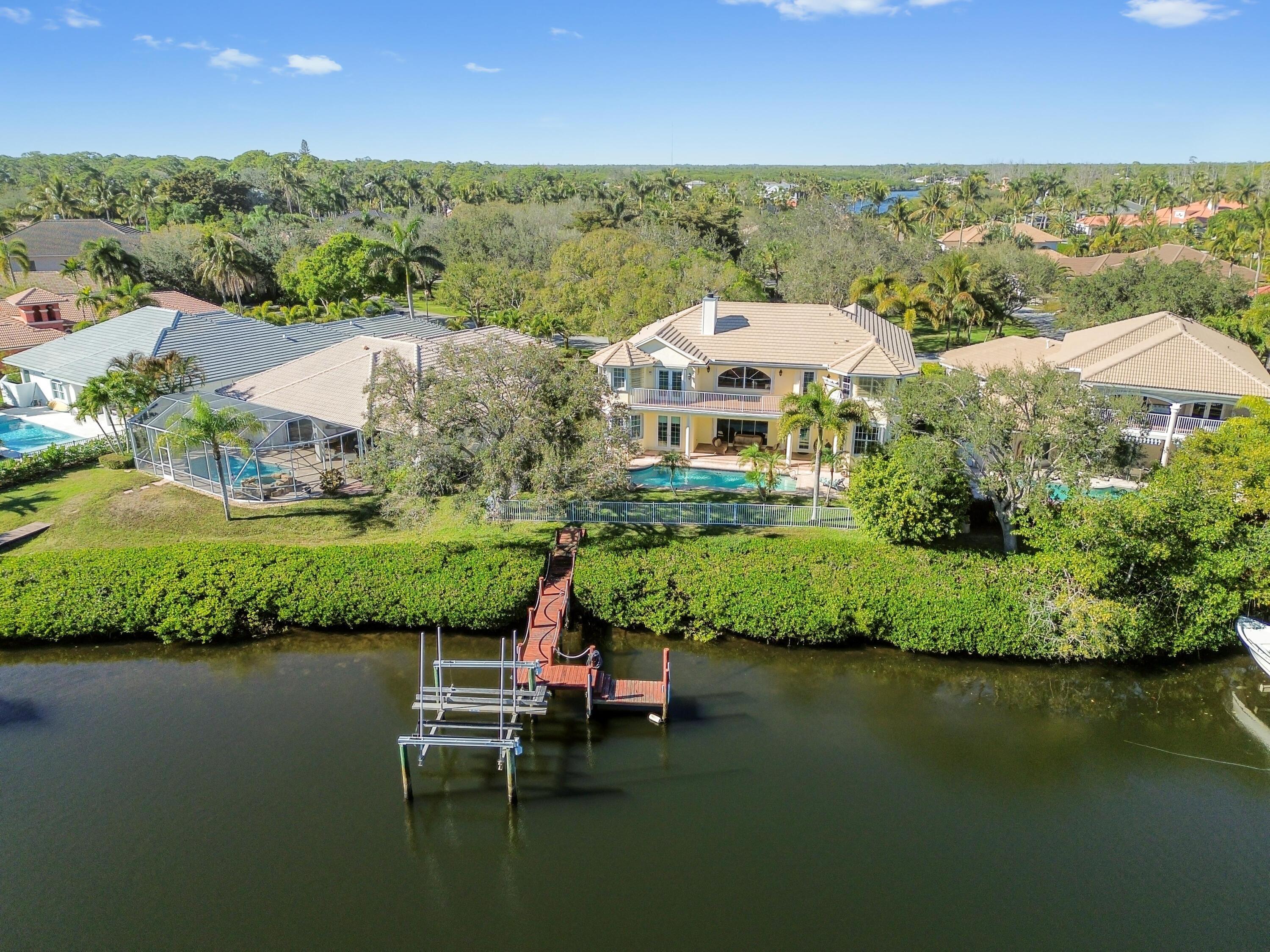 This stunning waterfront home features 6 beds 4 full baths plus an office as well as an additional upstairs flex space offers exceptional curb appeal and thoughtful design throughout, set on a 0.275-acre lot with 4,285 sq ft of living space. Built on a 2-ft stem wall for added elevation.Inside, the spacious great room features soaring 22' crowned ceilings and tranquil views of the Loxahatchee River. Saturnia marble floors flow throughout the first-floor living areas, with hardwood flooring in the den/office. A large, separate formal dining room showcases double coffered ceilings and elegant columns.The gourmet kitchen is ideal for entertaining, featuring granite countertops, tumbled marble backsplash, 42" raised-panel cabinets, double ovens, crown molding, and updated appliances, including a 2024 refrigerator with a 5-year warranty and a 2024 dishwasher with a 3-year warranty. Oversized sliding pocket doors open seamlessly to the pool and outdoor living area. The primary suite is located on the first floor, offering a luxurious bath with Crema Marfil marble floors, dual showers, granite vanities, a walk-in closet, a Roman tub, and classic column details. A wide southern-style oak staircase leads upstairs to a hardwood catwalk and circular "captain's perch" interior balcony, highlighted by over 65 feet of oak railings and spindles. The second level features 4 bedrooms plus a large game room/flex space (which may serve as a 7th bedroom or maid in law). One bedroom is uniquely octagon-shaped and connects to an antique-style bathroom with a clawfoot tub and European "growler" water closet. This entire wing, bedroom, bath, and game room can function as a separate living area for guests or relatives. Enjoy beautiful sunrises from the 42' second-floor balcony overlooking the river and pool area. Outdoor highlights include a heated pool and spa, a dock with a boat lift, a metal-fenced backyard, Cat 5 shutters, retractable blinds, replaced garage doors, and an oversized paver driveway with a 3-car attached garage and extra parking space. Additional features include a 3-zone A/C system, a built-in high-fidelity sound system on the first floor, and a 2022 washer with a 5-year warranty. Ideally located just 15 minutes from the inlet, this home offers the perfect blend of luxury, privacy, and waterfront living.