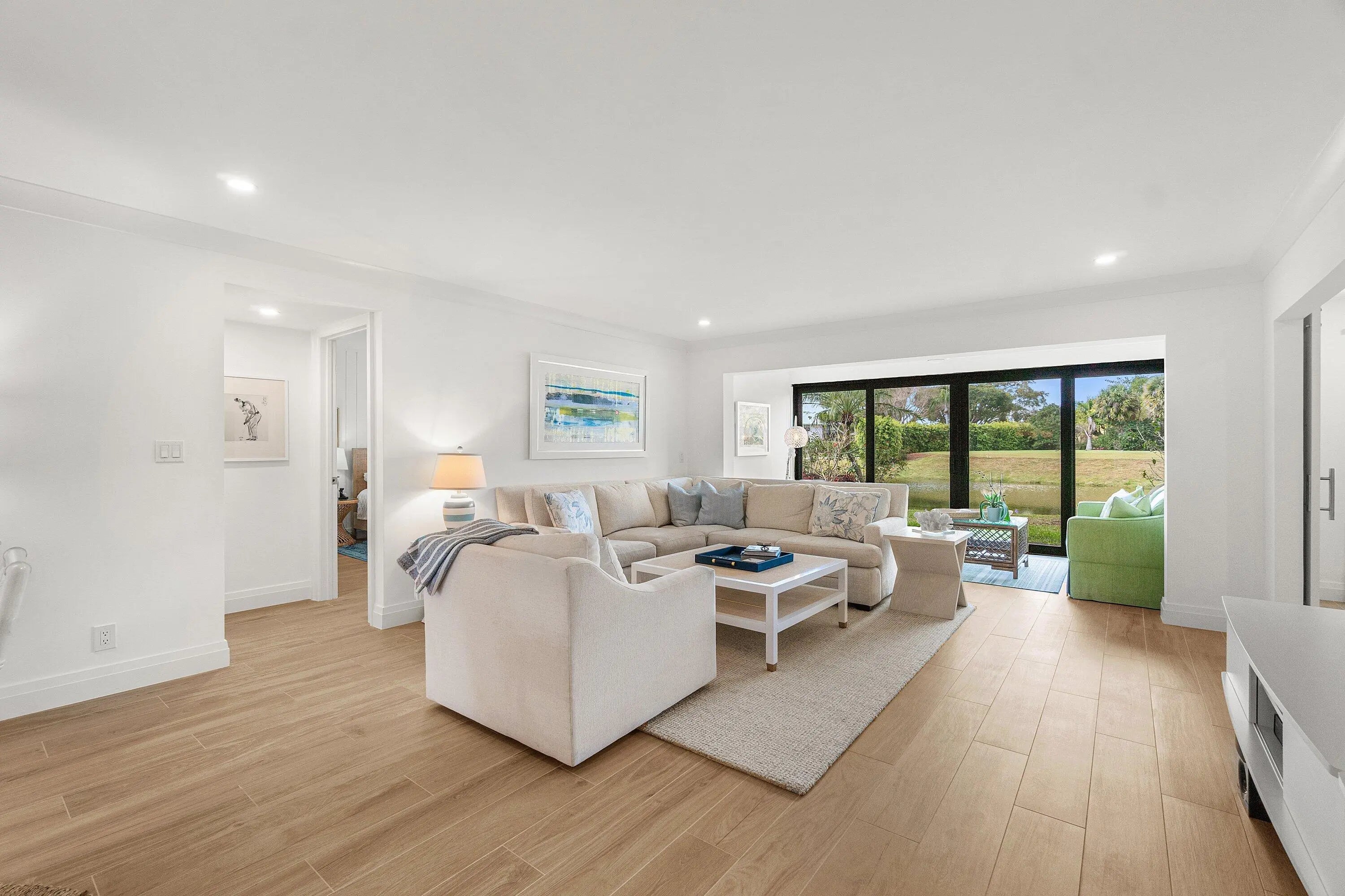 Exceptional1st floor condo offering a rare blend of luxury & functionality. This move-in-ready 3BR/3BA home stands apart with a highly desirable third full bath -- a feature seldom found in most Quail Ridge condominiums -- providing added comfort and privacy. Wood-look tile flooring flows throughout an open, elegant layout designed for effortless living & entertaining. Sliding glass doors reveal a spacious patio, creating a seamless indoor-outdoor retreat. The refined interior features a stylish bar area, a versatile bedroom/den with custom barn doors, and spacious closets. Impact glass enhances security & tranquility. Located within the Mockingbird area - a private enclave of only 16 condos in Quail Ridge - mandatory membership, two championship golf courses, racquet and fitness centers.