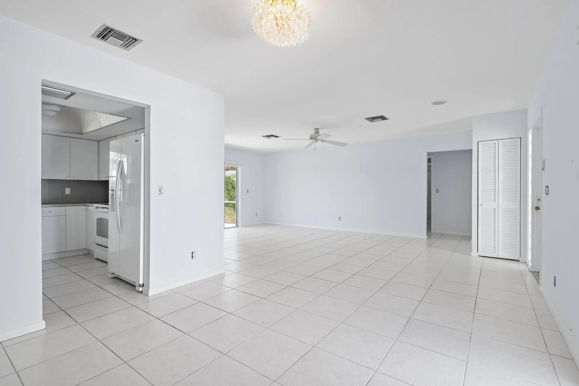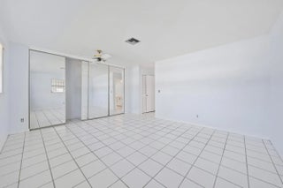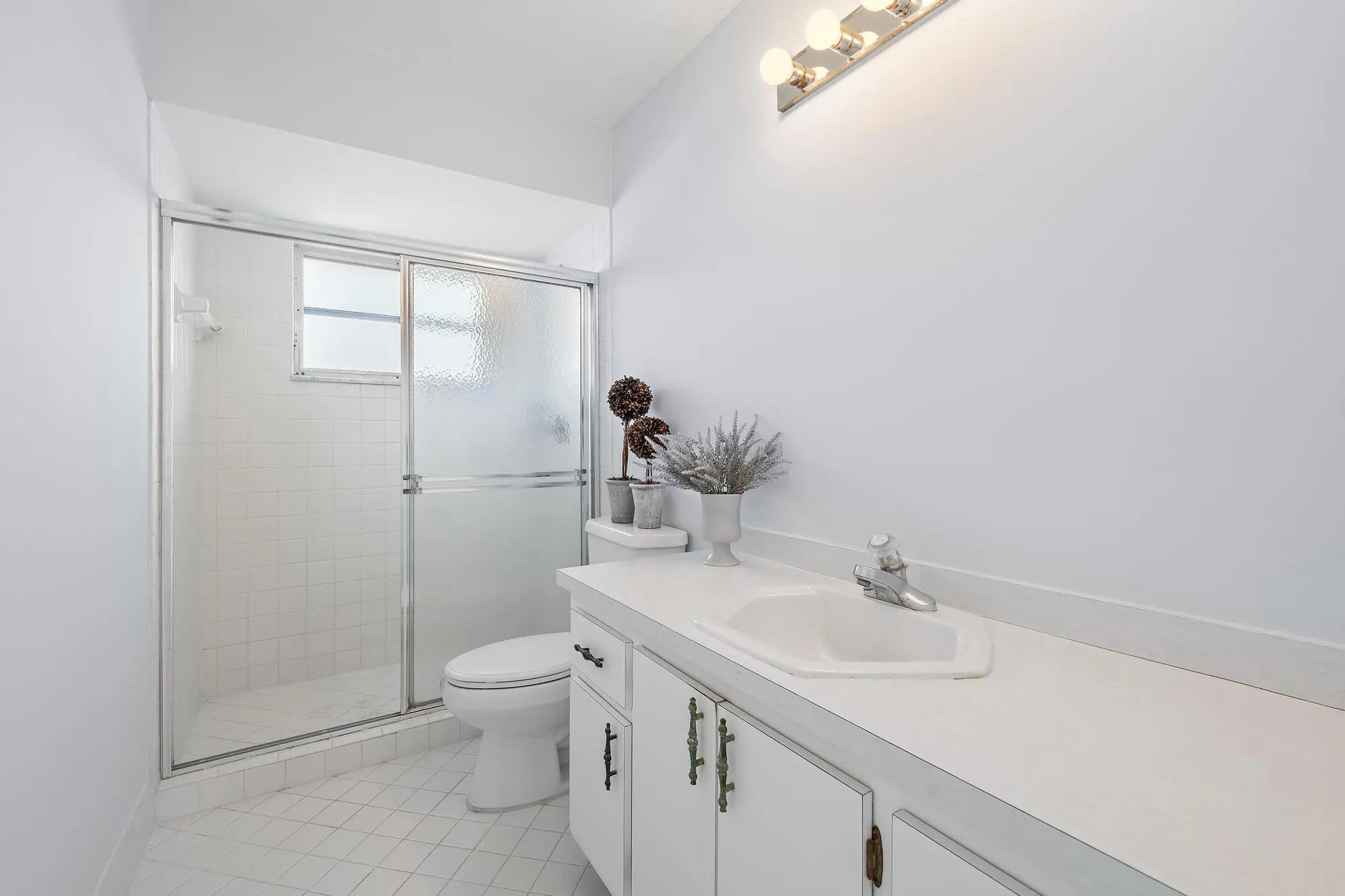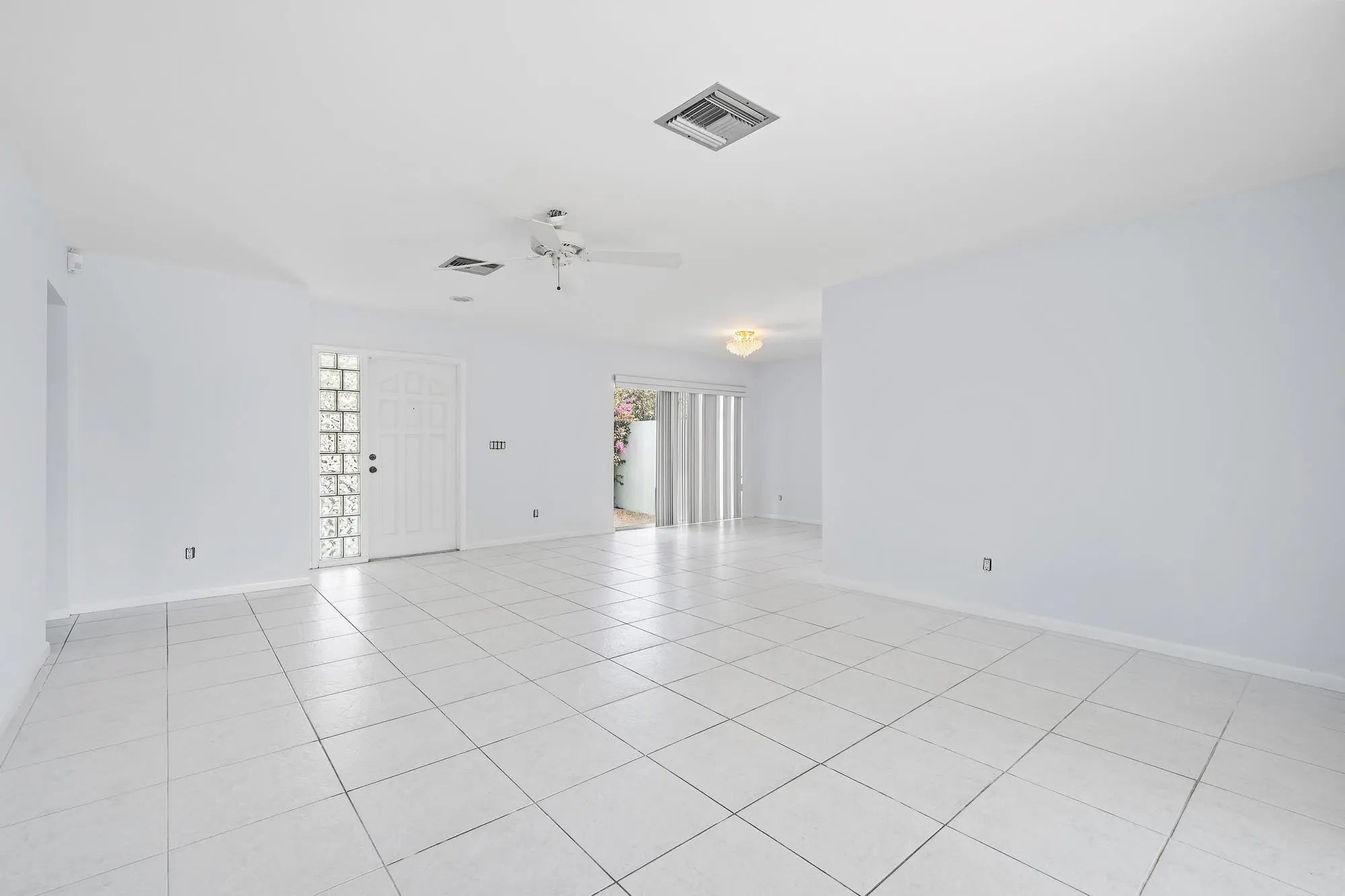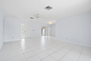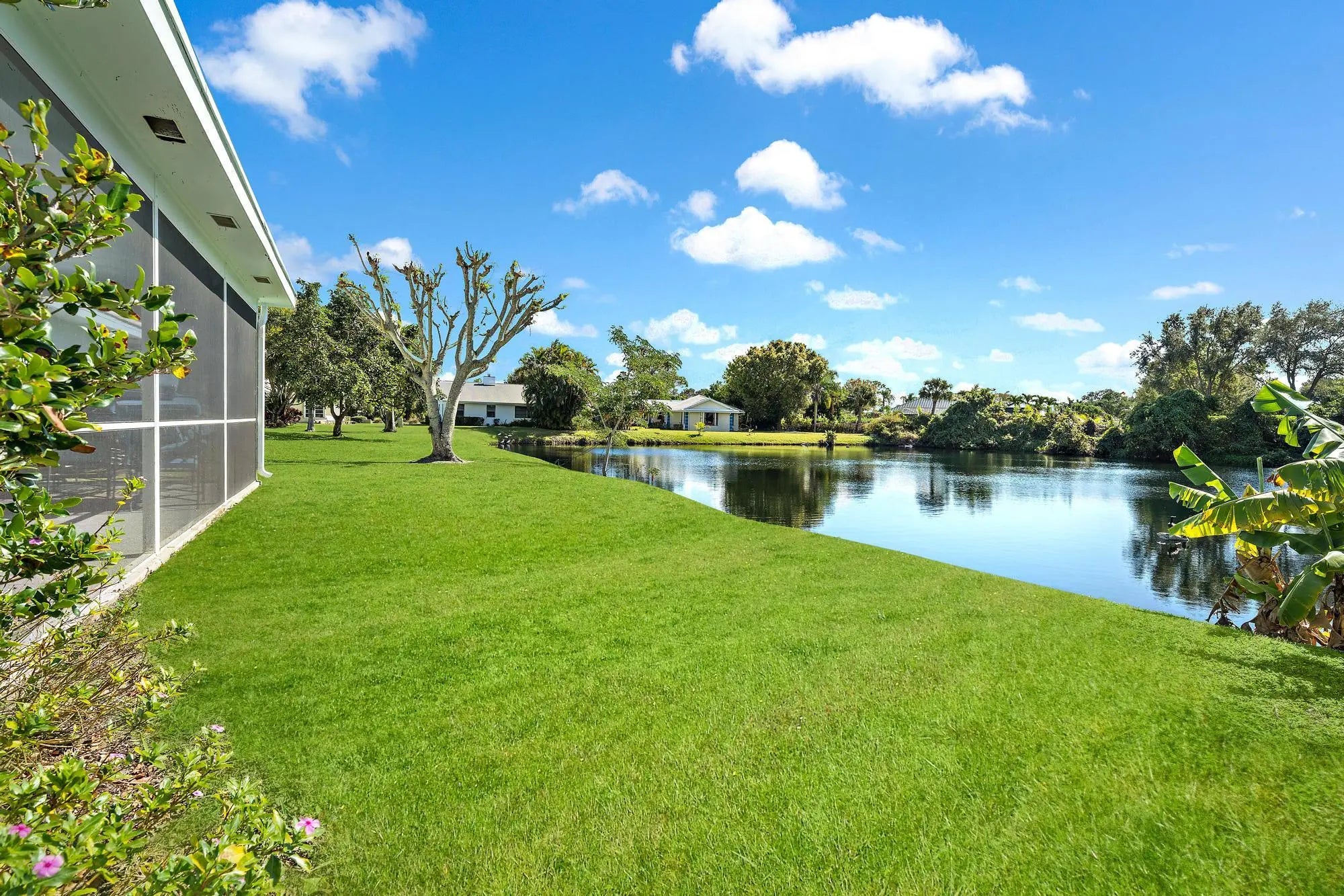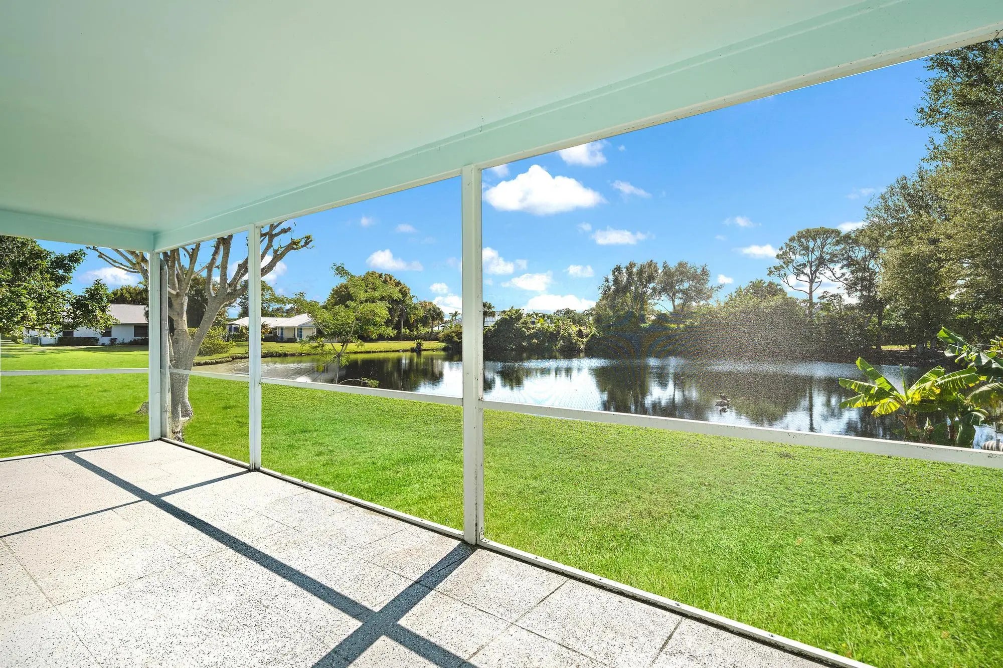 Nestled in a peaceful setting, this home overlooks a small lake, creating a private tropical retreat in your own backyard. A front patio offers added privacy and the perfect space for outdoor dining. The two-bedroom, two-bath home with a two-car garage features a spacious living and dining area that opens to a screened room with a convenient kitchen pass-through. Ceramic tile runs throughout. Located in Little Club, a 55+ community offering unlimited 9-hole golf, tennis, pickleball, pool, clubhouse, and social activities. HOA includes cable, Wi-Fi, trash, and amenities. Minutes to beaches and Tequesta.