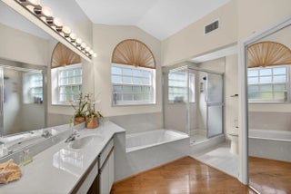 Nestled in the desirable village of Shearwater within the gated community of Jonathan's Landing in Jupiter, this beautifully maintained single-family, one-level home offers the perfect blend of comfort and coastal living. Just minutes from beaches, restaurants, and shopping, this 3-bedroom, 2.5-bath residence is tucked away on a quiet cul-de-sac for added privacy. The bright living room features vaulted ceilings and a stylish wet bar, creating an inviting space for relaxing or entertaining. Enjoy serene views of the spacious screened patio and a private backyard with lush garden views--perfect for morning coffee or evening gatherings. The home features a newer roof (2012) and impact windows (2014), offering added peace of mind and long-term value.