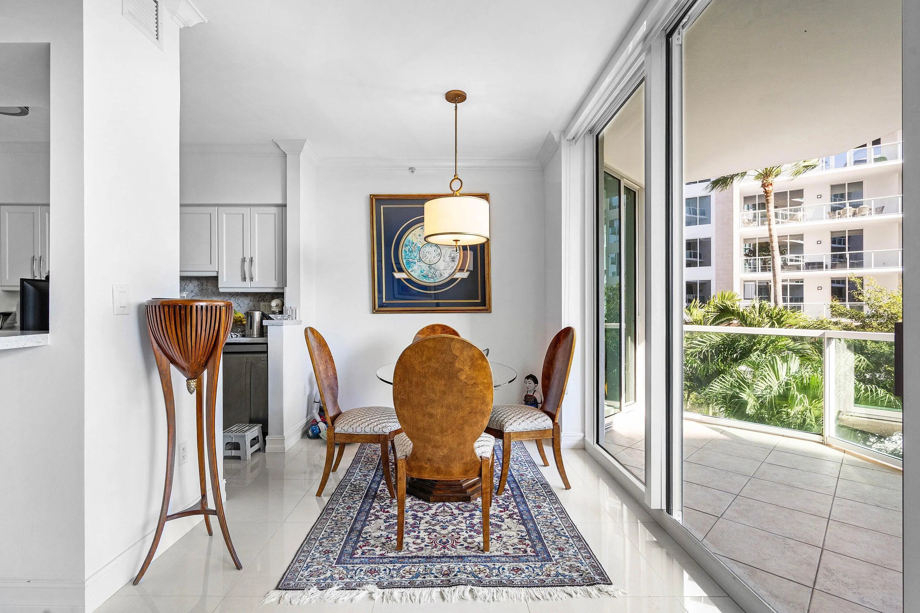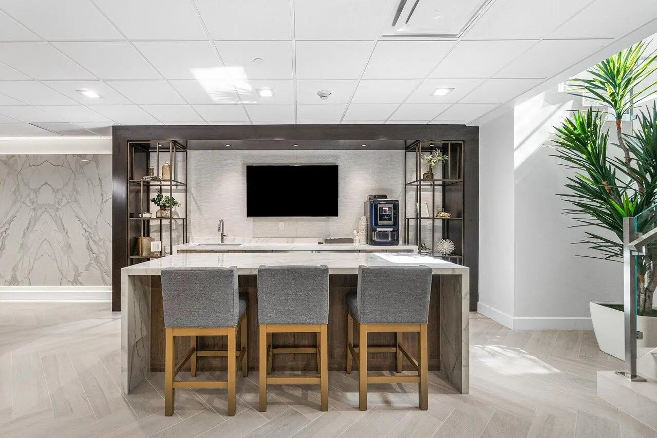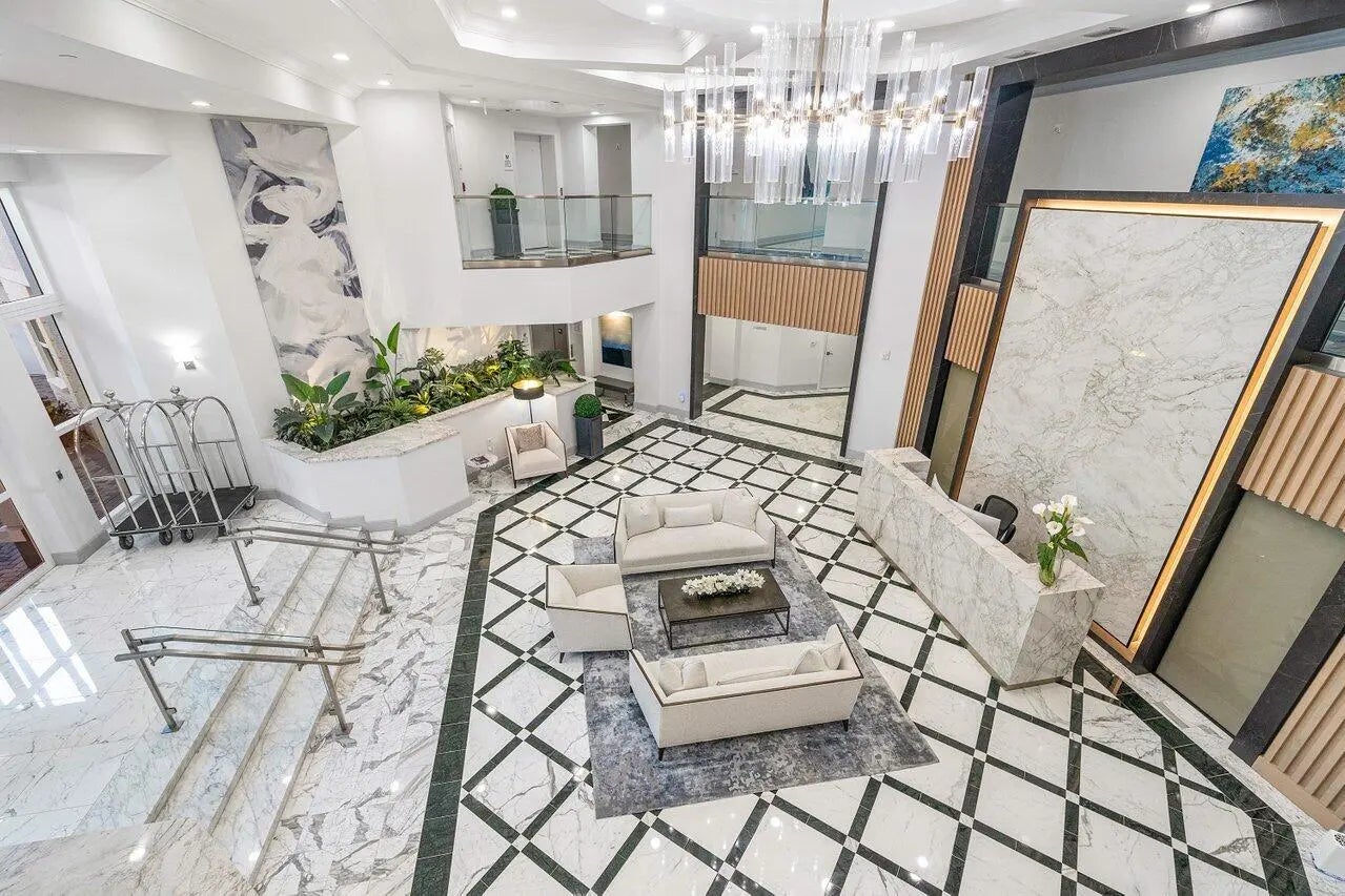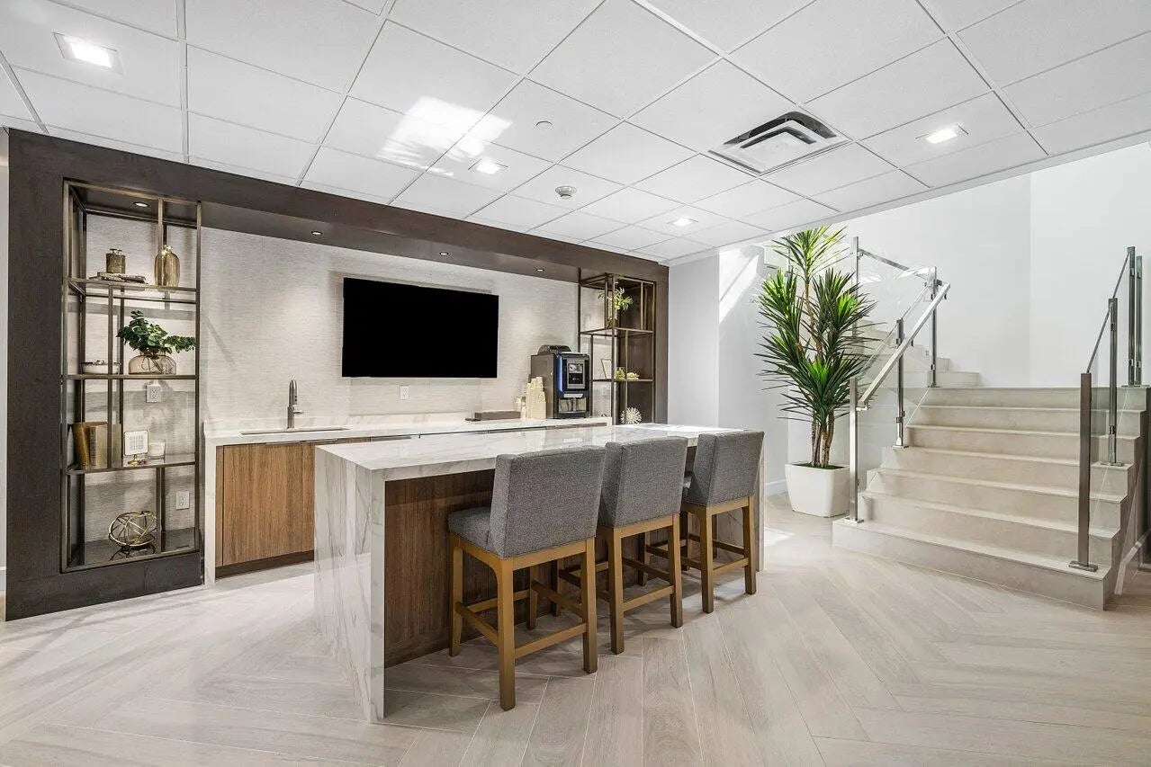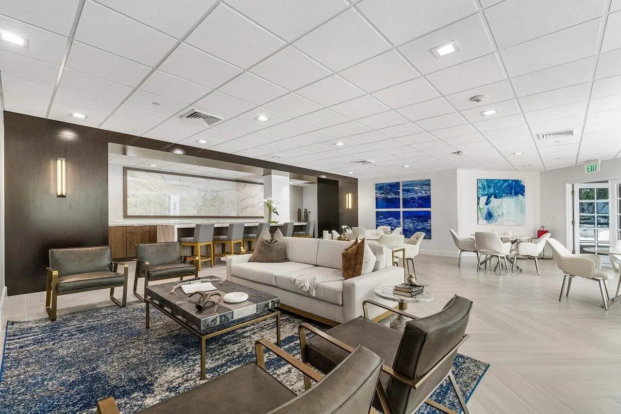 For annual rental. Located on the 3rd floor facing NE Boca Raton, 1 bedroom + den, 2 bath, 9 ft ceilings. Bright, refined, it offers spacious open living, a large covered balcony with lush palm views, elegant modern finishes throughout including crown mouldings. Enjoy floor to ceiling impact glass, a white chef's kitchen with stone counters, and a generous primary suite with custom walk in closet and spa style bath. Step inside to expansive living and dining areas framed by oversized sliding glass doors that fill the home with natural light and open to a private balcony overlooking tropical landscaping. Polished large format tile floors create a seamless, sophisticated feel throughout the main spaces.